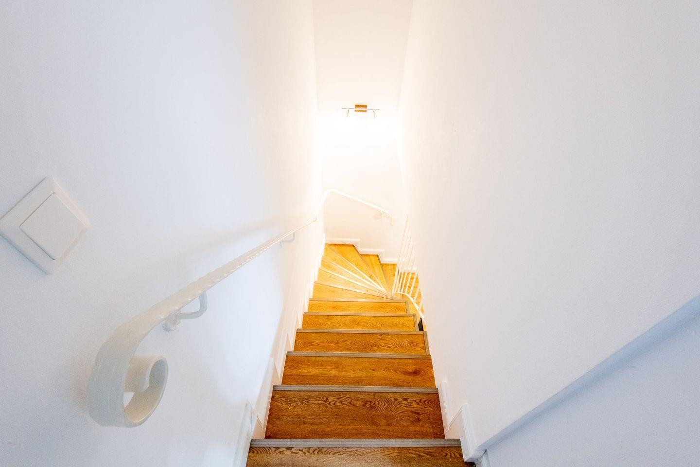 Ein Flur mit Garderobe und Sessel sorgt für zusätzlichen Komfort. Die Wohnung verfügt über einen Pkw-Stellplatz, und im Haus stehen eine Waschmaschine und ein Trockner zur Verfügung. WLAN (ohne Gewähr) ist ebenfalls vorhanden.