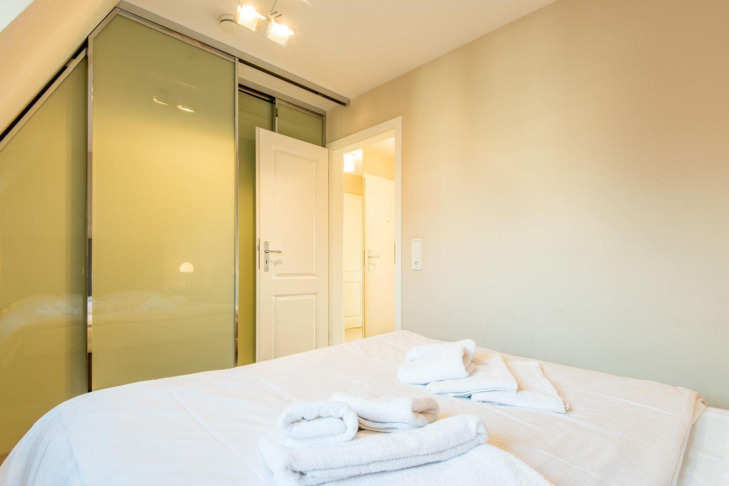 Im ersten Schlafzimmer erwartet Sie ein Doppelbett (160x200 cm) und ein Einbauschrank mit viel Stauraum. Das zweite Schlafzimmer ist ebenfalls mit einem Doppelbett (2x 90x200 cm), einem Sessel, einem Einbauschrank und einem zusätzlichen TV ausgestattet.