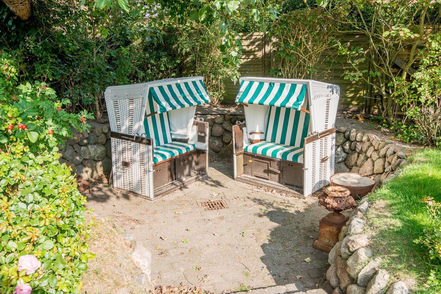 Ein besonderes Highlight ist die großzügige Dachterrasse mit zwei Strandkörben – der perfekte Ort, um die frische Nordseeluft zu genießen und bei einem guten Buch zu entspannen. Im Garten finden Sie ebenfalls eine Terrasse mit Strandkörben, ideal für gemütliche Stunden im Freien. Hier können Sie die Sonne von morgens bis abends genießen oder bei einer Tasse Tee den Tag Revue passieren lassen.