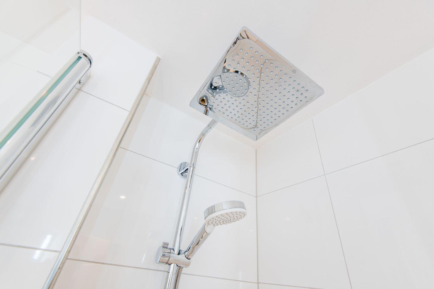 Das helle Badezimmer ist mit einer Dusche, einem WC und einem Föhn ausgestattet. Das Tageslicht sorgt für eine angenehme Atmosphäre, und die moderne Ausstattung bietet den nötigen Komfort für Ihren Aufenthalt.