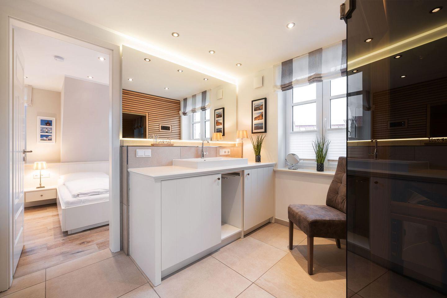 Diese hochwertige Ferienhaushälfte mit ca. 95 m² auf drei Ebenen bietet Platz für bis zu 4 Personen und vereint höchsten Komfort mit einer erstklassigen Lage nur 250 Meter vom Strand entfernt. Mit eigener Sauna, einer möblierten Terrasse, einem sonnigen Garten und einem Balkon nach Süden, lädt diese Unterkunft zum Erholen und Genießen ein. Ein Loewe Soundsystem in allen Räumen sorgt für ein außergewöhnliches Klangerlebnis. Das Hausteil liegt ideal in Westerland – nahe Bäcker und Fahrradverleih. Freuen Sie sich auf eine traumhafte Auszeit in dieser eleganten Doppelhaushälfte, die durch ihre ruhige Lage, hochwertige Ausstattung und unmittelbare Strandnähe überzeugt.