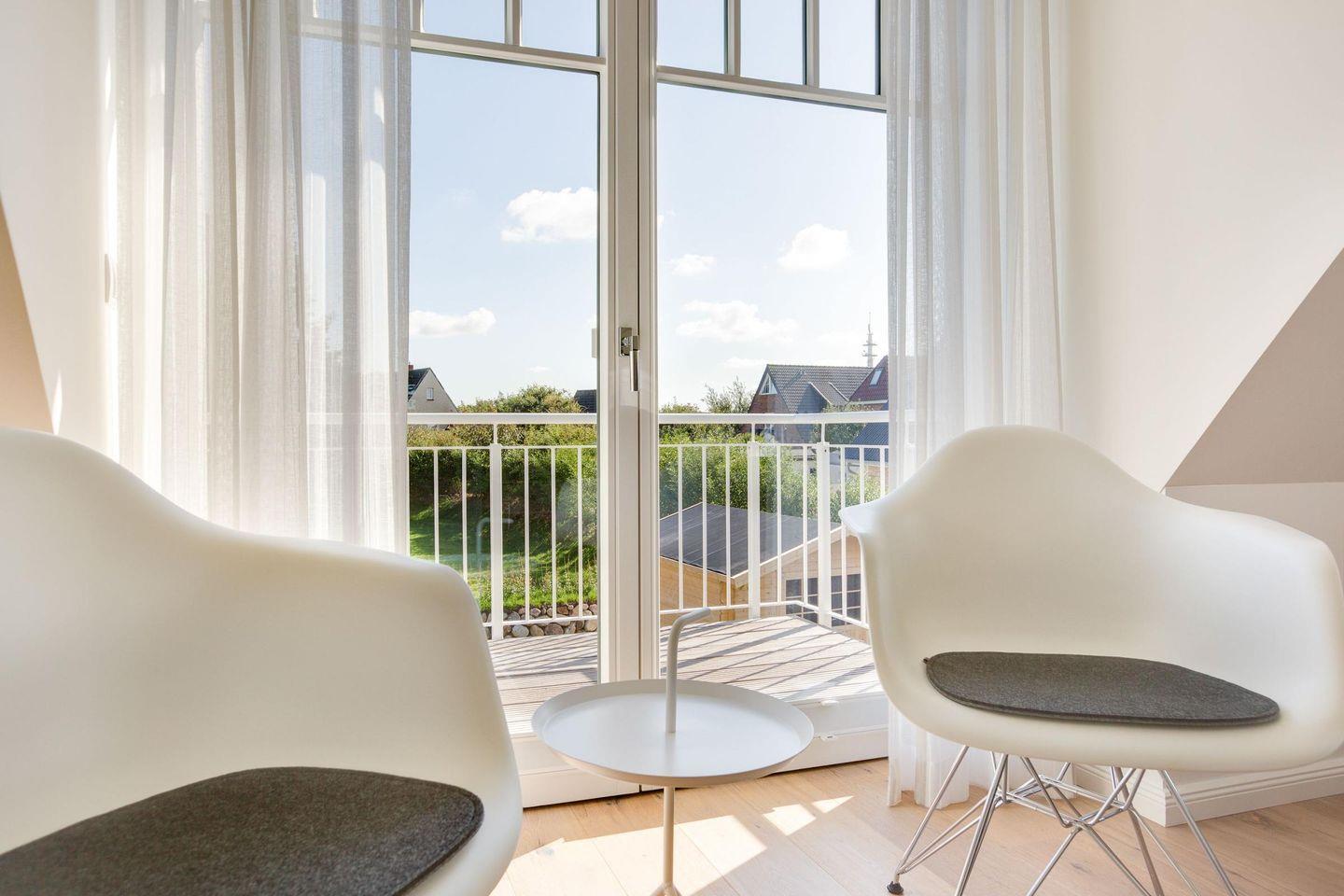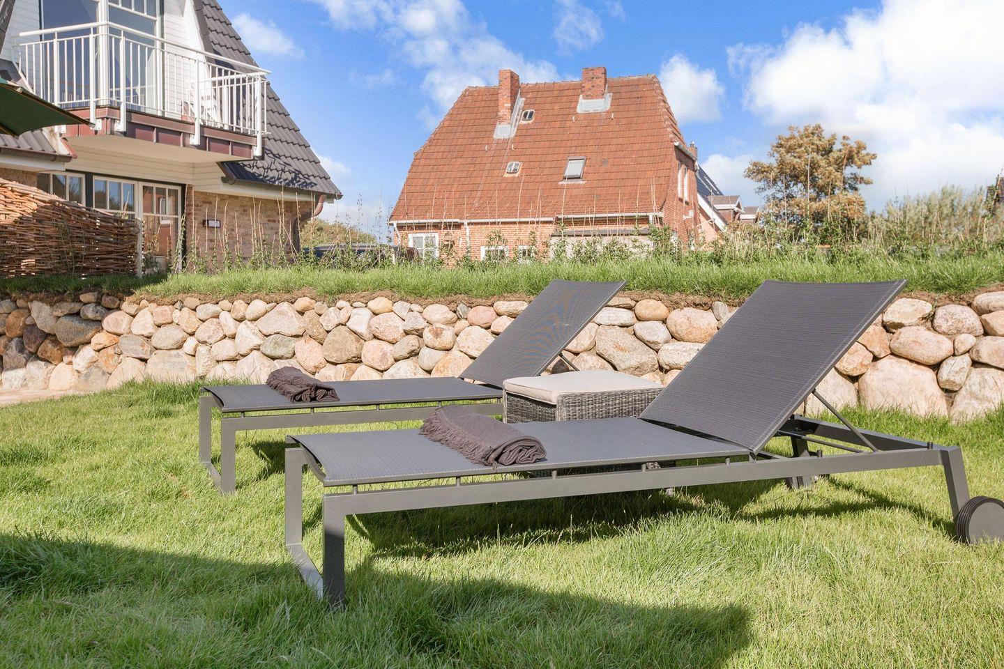 EXTRAVAGANTE DOPPELHAUSHÄLFTE 'HAUS TESS' MIT SAUNA UND STRANDKORB