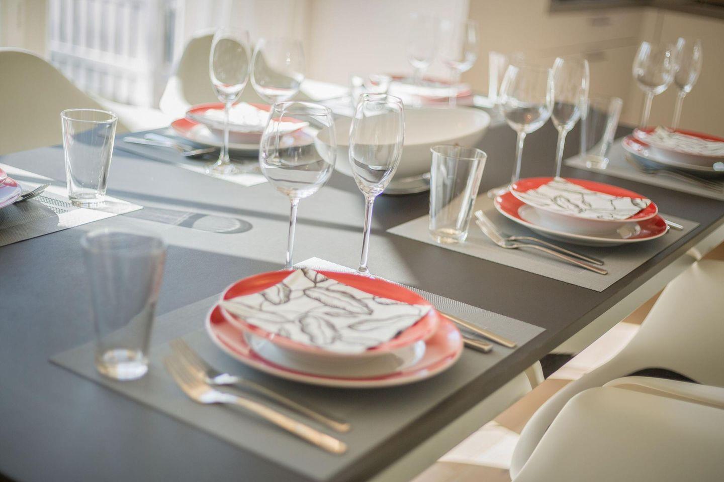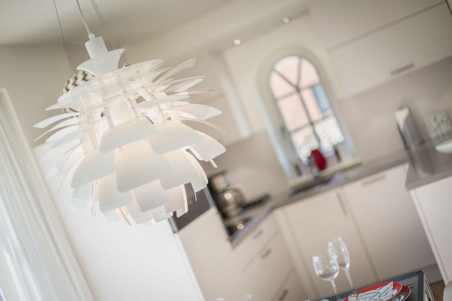 Die offene, moderne Küche ist komplett ausgestattet und bietet Ihnen alles, was Sie für die Zubereitung köstlicher Mahlzeiten benötigen. Mit Cerankochfeld, Geschirrspüler, Backofen und einer Filterkaffeemaschine können Sie hier nach Herzenslust kochen.