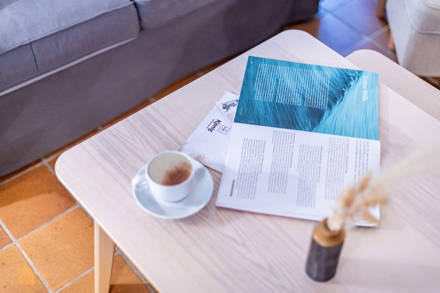 Die Küche ist offen gestaltet und bietet mit Ceranfeld, Filterkaffeemaschine und Nespresso-Maschine höchsten Komfort für Ihre kulinarischen Wünsche. Hier finden Sie alles, was Sie zur Zubereitung von Mahlzeiten benötigen, und genießen gleichzeitig die gesellige Atmosphäre.