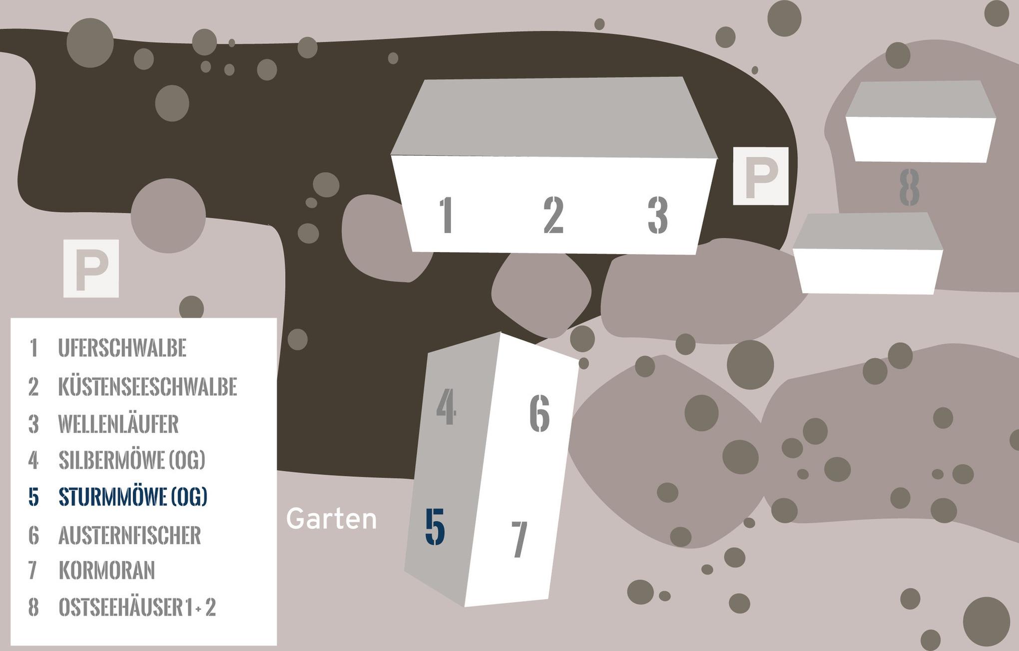 Relaxen und Wohlfühlen: Die Ferienwohnung Sturmmöwe ist exklusiv eingerichtet und liegt dicht am wunderschönen Ostseestrand. Auf 65 Quadratmetern fühlen sich bis zu 4 Personen pudelwohl. Die Wohnung befindet sich im Obergeschoss und verfügt über 2 Schlafräume.