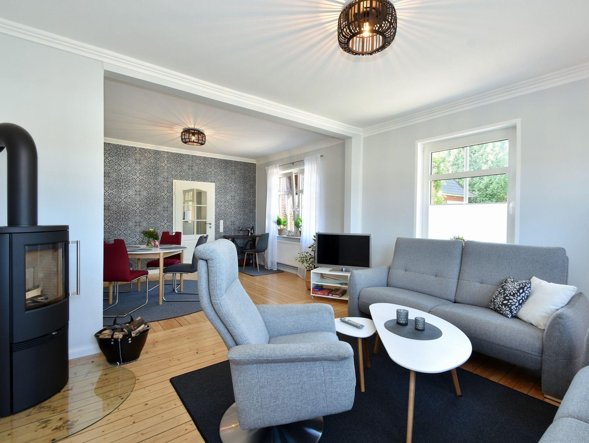 Vollständig renoviertes Ferienhaus (EG 130 qm) für bis zu 5 Personen (nur Urlaubsgäste, keine Monteurunterkunft), zentral an einer Hauptstraße gelegen. 2 große Schlafzimmer mit 5 Betten, großes Wohnzimmer, Holzofen, Waschmaschine und Möglichkeit zum Trocknen, Küche, Bad, sep. WC, Gäste-WC, großer Garten mit Nebengebäude und Terrasse. Buchbar ab 3 Übernachtungen, für 2 Personen in der Hauptsaison 99,-€, Nebensaison 79,-€, je weitere Person ab 14 Jahren 15,-€.