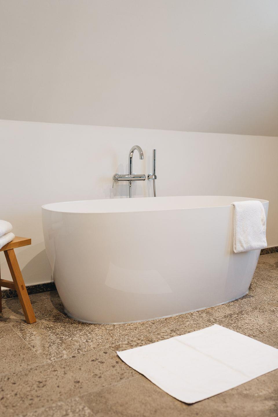 Individuelle Schlafräume laden zum Träumen ein. Das erste Schlafzimmer befindet sich im Erdgeschoss mit eigenen Zugang zur Terrasse. Die anderen beiden Schlafzimmer liegen gemeinsam mit dem Wannenbad im Obergeschoss und bieten einen traumhaften Ausblick.