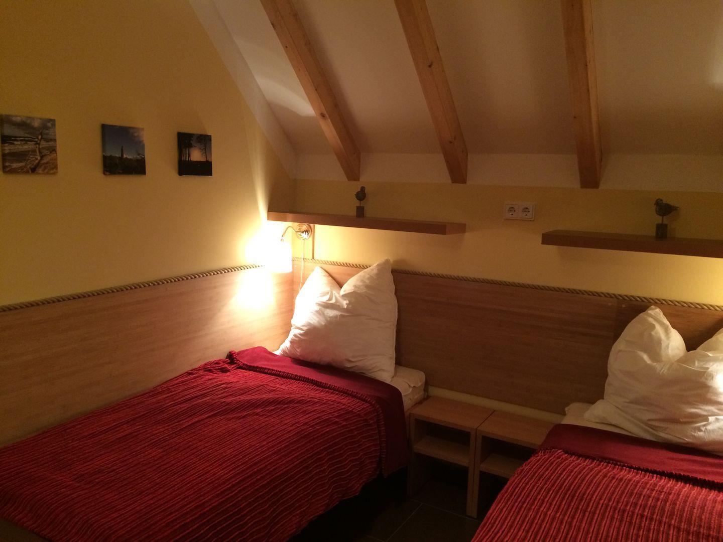 Im Spitzboden befinden sich zwei weitere Schlafmöglichkeiten (Doppelbett) mit Sat-TV.
