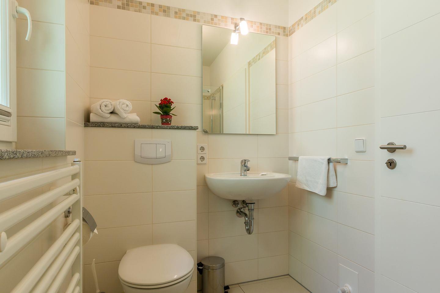 Im Erdgeschoss empfängt dich der großzügige Wohnraum mit einer gemütlichen Sitzecke am Kaminofen. Der große Essbereich mit Blick in den Garten verspricht geselligen Momente beim Essen und für Spiele. Keine Wünsche offen lässt auch der offene Küchenbereich mit seiner komfortablen und funktionalen Einbauküche. Ein Gäste-Bad mit Dusche/WC befindet sich ebenfalls auf der unteren Etage. Vom Wohnbereich gelangst du direkt auf die großzügige Terrasse. Hier lassen sich entspannte Stunden nach einem ereignisreichen Tag verleben. Das erste Obergeschoss verfügt über ein Schlafzimmer mit einem Doppelbett sowie ein weiteres Schlafzimmer mit zwei Einzelbetten. Weiterhin schließt sich das moderne Badezimmer mit Dusche/WC an. Der Spitzboden hält eine kleine Wellnessoase für dich bereit. Hier kannst du ausgiebig saunieren - ein tolles Highlight, besonders an den kühleren Tagen. Ein Ruhebereich mit Dusche gehört selbstverständlich dazu.