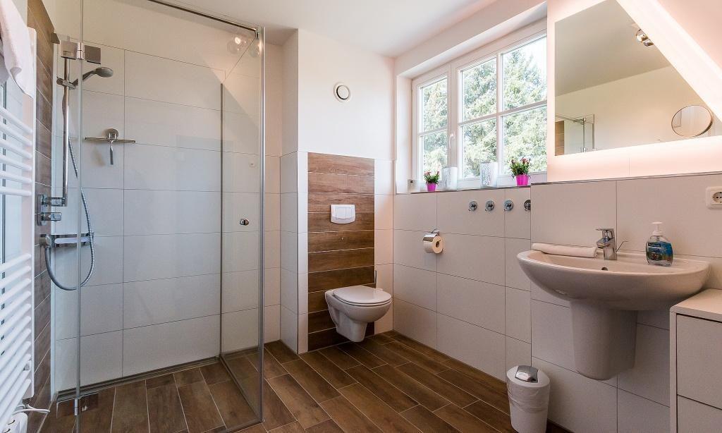 Im Erdgeschoss erwartet dich ein freundlicher, lichtdurchfluteter Wohnraum mit einer gemütlichen Eckcouch am Kaminofen. Die voll ausgestattete Küche und der Essbereich fügen sich unmittelbar in den Raum ein und schaffen einen offenen Wohncharakter. Hier lässt es sich gemeinschaftlich kochen, schlemmen und klönen. Ein Gästebad mit Dusche/WC und Fußbodenheizung sowie der Hauswirtschaftsraum mit einer Waschmaschine befinden sich ebenfalls im Erdgeschoss. Zwei Schlafzimmer, die jeweils mit einem Doppelbett und einem TV ausgestattet sind, befinden sich im Obergeschoss. Auch ein zweites Bad mit Dusche/WC und Fußbodenheizung ist auf dieser Etage vorhanden und sorgt mit der integrierten Sauna für kleine Wellness-Momente zu jeder Jahreszeit.