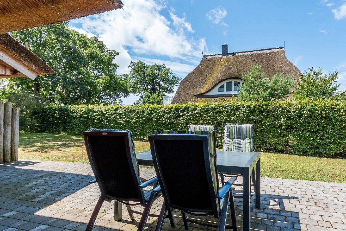 Die tolle Reetdach-Doppelhaushälfte wurde 2020 neu gebaut. In ruhiger Lage und dennoch zentral im Ortskern von Wieck steht "An den Eichen 2" für erholsamen Landurlaub in einem der schönsten Fischerdörfer auf der Halbinsel. Das Nationalparkzentrum Darßer Arche, Cafés, Restaurants sowie der idyllische kleine Hafen sind bequem zu Fuß zu erreichen. Vor allem Aktivurlauber dürfte freuen, dass das gut ausgebaute Radwegenetz am Haus entlangführt. Dieser bringt dich zu Fuß oder mit dem Rad in den Darßer Urwald, zum wilden Weststrand, zur Boddenlandschaft oder auch in die umliegenden Dörfer und Ostseebäder.