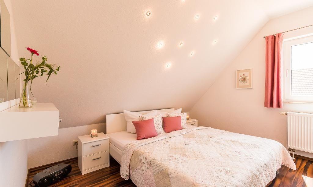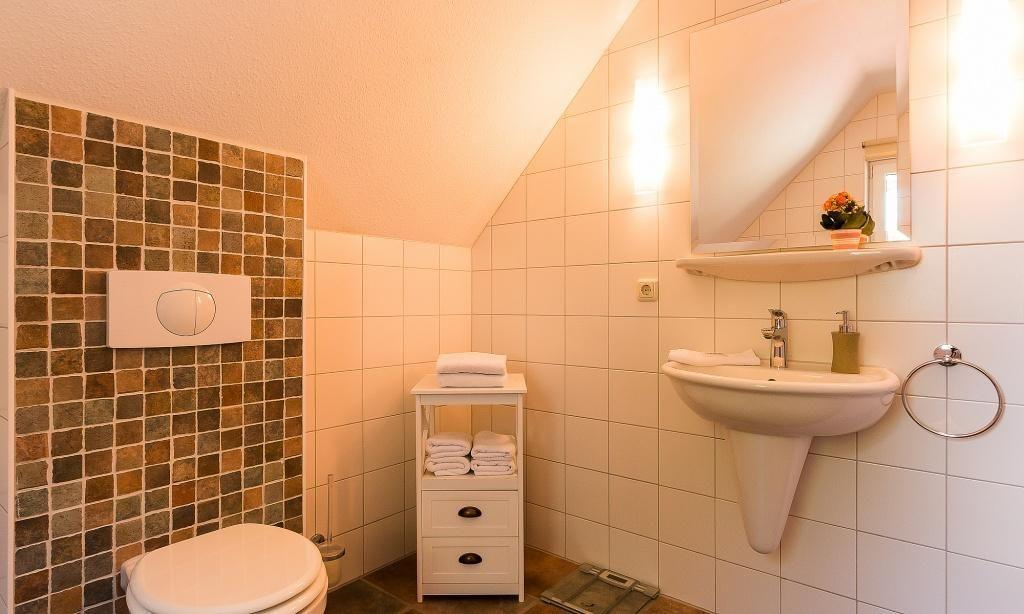 Im Erdgeschoss erwartet dich der helle und freundliche Wohnraum mit gemütlicher Wohnlandschaft und TV-Bereich sowie einem großzügigen Esstisch. Die Küche befindet sich separat und ist komfortabel ausgestattet. Auch ein Gäste-WC ist in der unteren Etage untergebracht. Das Obergeschoss verfügt über zwei Schlafzimmer. Eines ist mit einem Doppelbett und das weitere ebenfalls mit einem Doppelbett sowie einem zusätzliches Schlafsofa ausgestattet, welches als Aufbettungsmöglichkeit für ein Kind (4-13 Jahre) genutzt werden kann. Ein großes Bad mit Wanne und Dusche/WC befindet sich ebenfalls auf der Etage. Die komfortable Ausstattung und lichtdurchflutete Räume sorgen im gesamten Ferienhaus für eine angenehme Wohnatmosphäre.