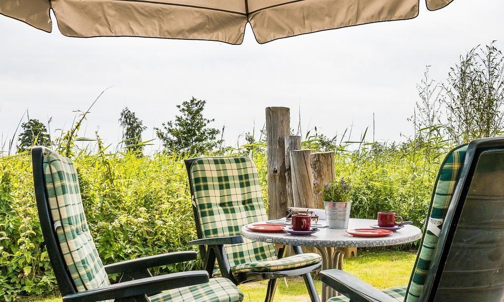 Dir steht im Garten ein separater Sitzplatz mit fest installiertem Sonnenschirm zur Verfügung. Hier kannst du ganz entspannt den Tag ausklingen lassen. Außerdem gehört ein Pkw-Stellplatz auf dem Nachbargrundstück zur Ferienwohnung dazu.