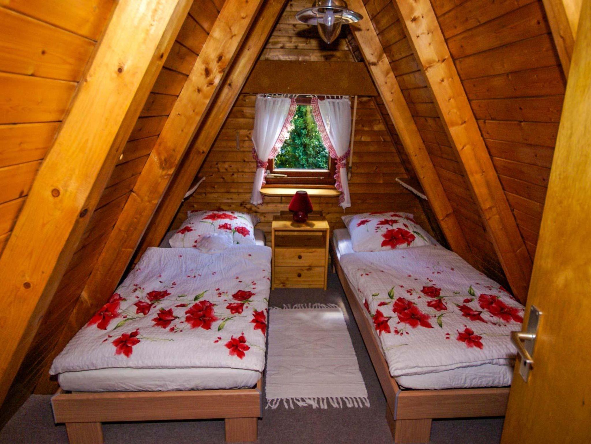 Es handelt sich um ein Nur-Dach-Haus mit angebautem Wintergarten und Carport. Das idyllische Feriendomizil verfügt über zwei Schlafzimmer mit jeweils zwei Einzelbetten, sowie einem Badezimmer, einer Küche und einem separaten Wohnzimmer.
