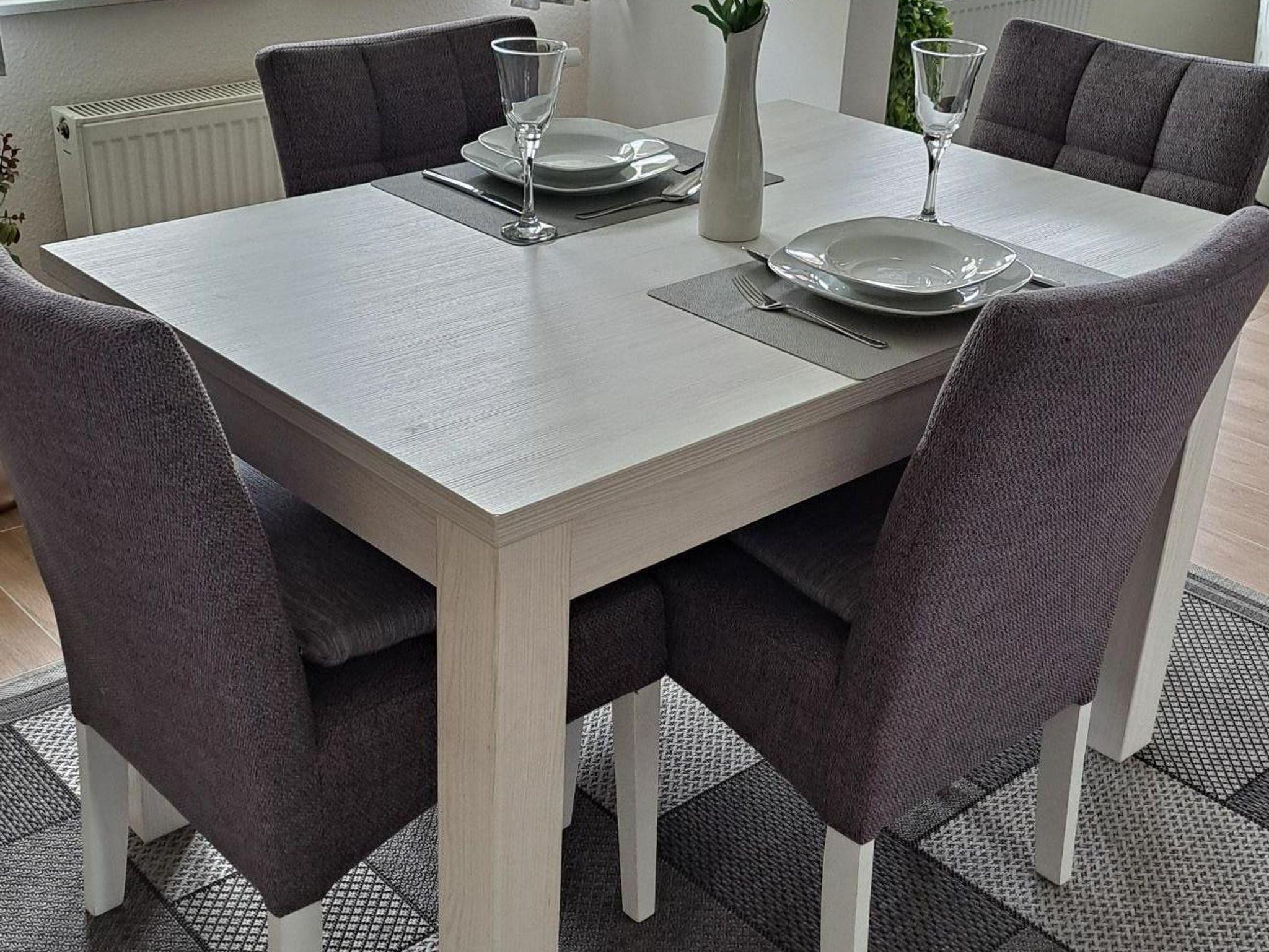 Der offene Wohnbereich verleiht der Wohnung eine gemütliche Atmosphäre. Dort erwartet Sie eine liebevoll eingerichtete Sitzgruppe mit TV und einem einladenden Essbereich. Angrenzend finden Sie eine voll ausgestattete Küche mit Zugang zum großräumigen Balkon, der eine Aussicht auf den schönen Garten bietet.