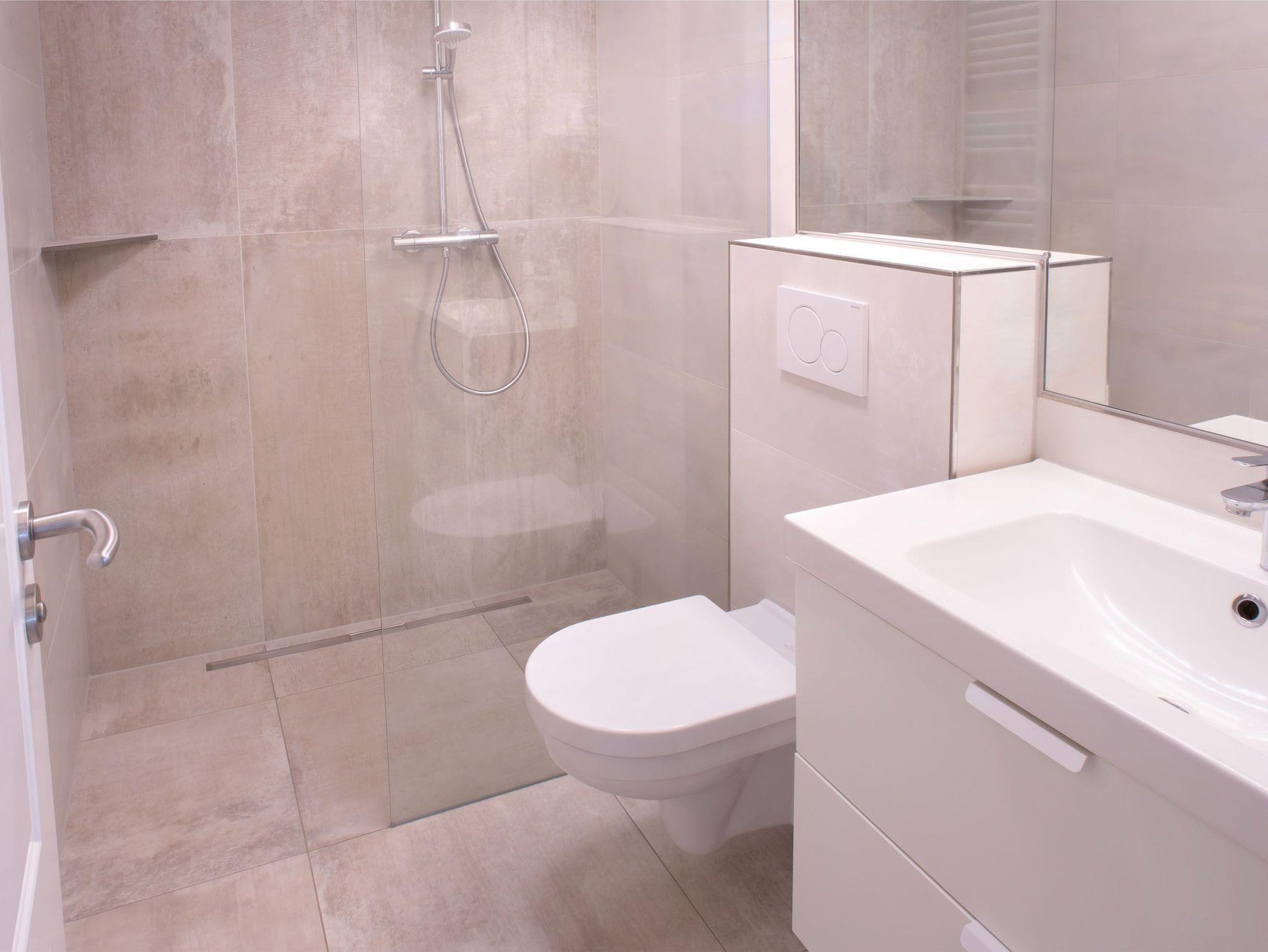 Vom Wohnraum aus ist der Zugang zur Terrasse mit Gartenmöbeln gegeben. Im Flur ist eine Flurgarderobe angebracht. Das Bad (innen liegend) ist mit Dusche/WC und Waschbecken ausgestattet.