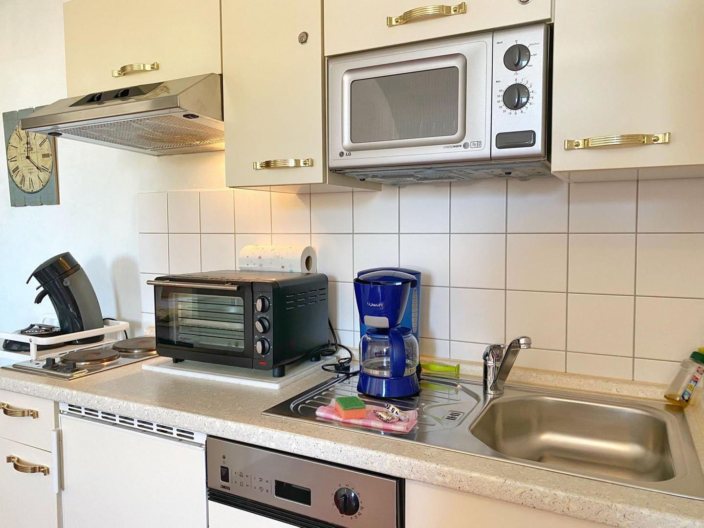 Das 2-Raum-Appartement Nr. 19 "Kapitän" befindet sich in der 2. Etage des gepflegten Appartementhauses und verfügt über Schlafmöglichkeiten für 2 Personen. Es gibt ein Wohnzimmer, ein Schlafzimmer mit Doppelbett, eine offene Küche, ein Bad mit Dusche und einen Balkon. Im Wohnbereich ist eine kleine Küche integriert mit Herd, Backofen, Mikrowelle, Geschirrspüler, Kühl-Gefrierschrank und natürlich Kaffeemaschine, Toaster und Wasserkocher. Im Appartement ist ein Flachbild-TV und WLAN vorhanden. Zum Appartement gehört der Pkw-Stellplatz Nr. 19 direkt am Haus. Der Garten am Haus kann gemeinschaftlich genutzt werden. Außerdem gibt es zur gemeinschaftlichen Nutzung eine Waschmaschine und einen Trockner als Münzautomaten sowie Fahrradunterstellmöglichkeiten.
