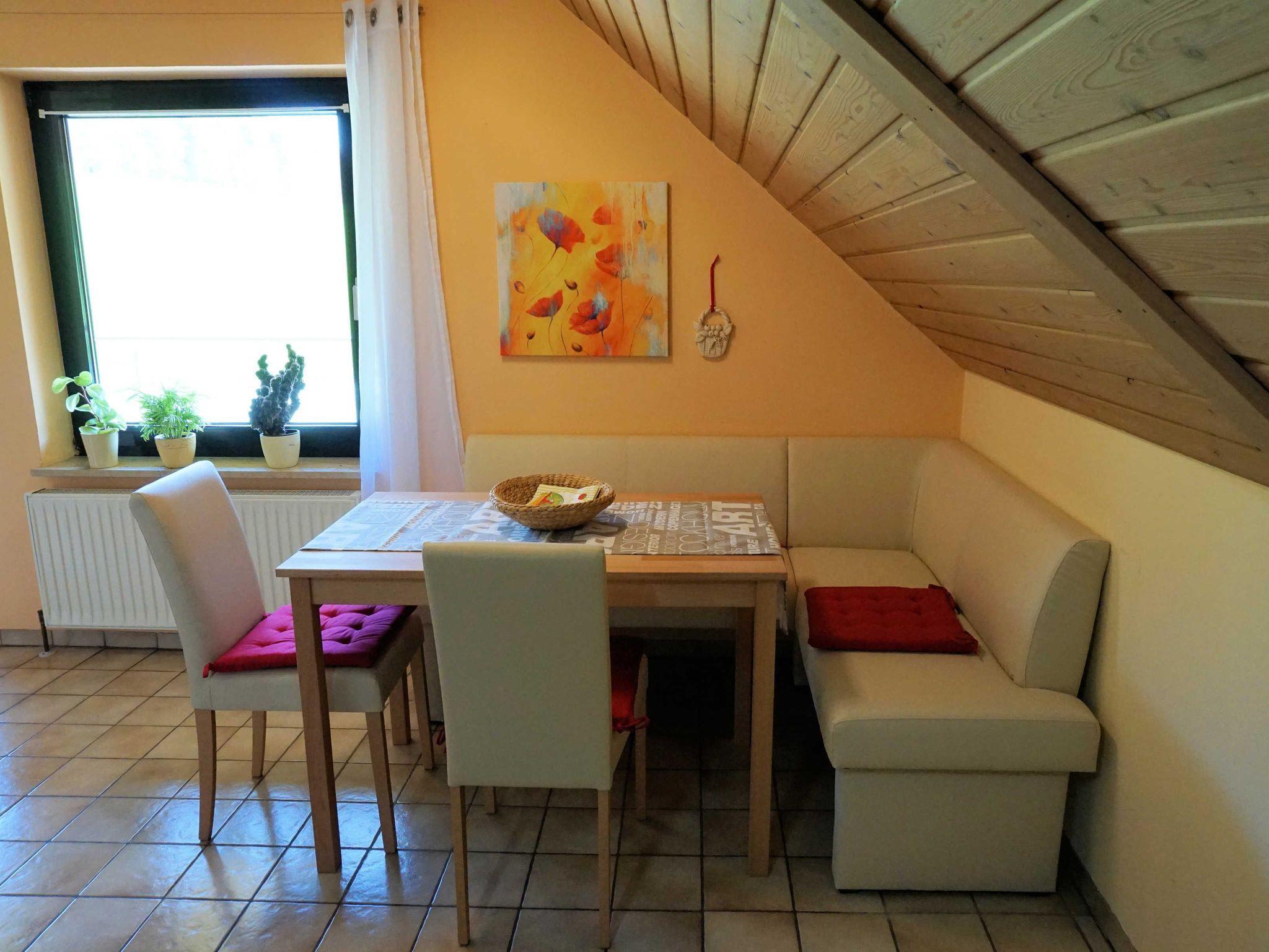 Im Wohnzimmer steht Ihnen ein Sat TV, Stereoanlage und eine große Sitzecke zur Verfügung. Besonders reizvoll ist der große Balkon mit herrlicher Aussicht auf Wald und Flur.