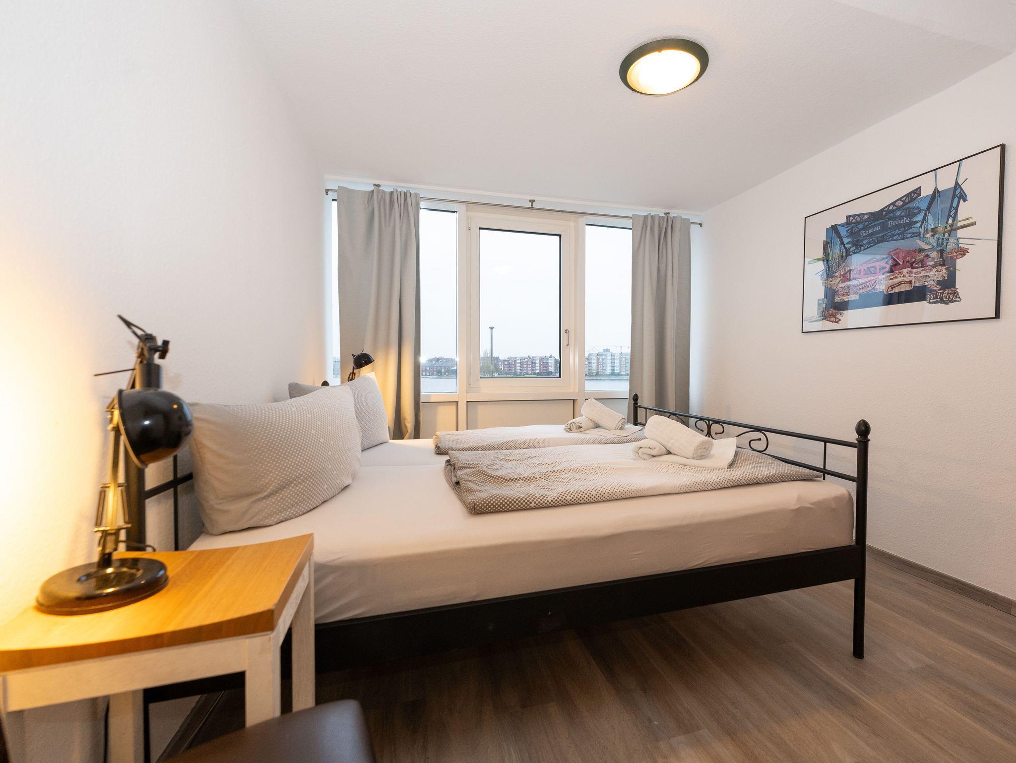 Im Erdgeschoß befindet sich der offene Wohn-/Eßbereich, ein Bad mit Dusche, die überdachte Terasse, mit Blick auf den maritimen Yachthafen und direkten Zugang zum Südstrand. Im 1. Obergeschoß befinden sich zwei Schlafzimmer. Das größere ist mit einem Doppelbett ausgestattet, das kleinere mit einem hochwertigem Schlafsofa. Beide Zimmer mit Blick auf den Binnenhafen. Hier befindet sich ebenfalls das zweite Bad mit Badewanne. Die Wohnung verfügt über einen eigenen PKW-Stellplatz. WLAN sowie ein urgemütlicher Strandkorb auf der Terrasse gehören ebenfalls zur hochwertigen Ausstattung dieser Ferienwohnung.