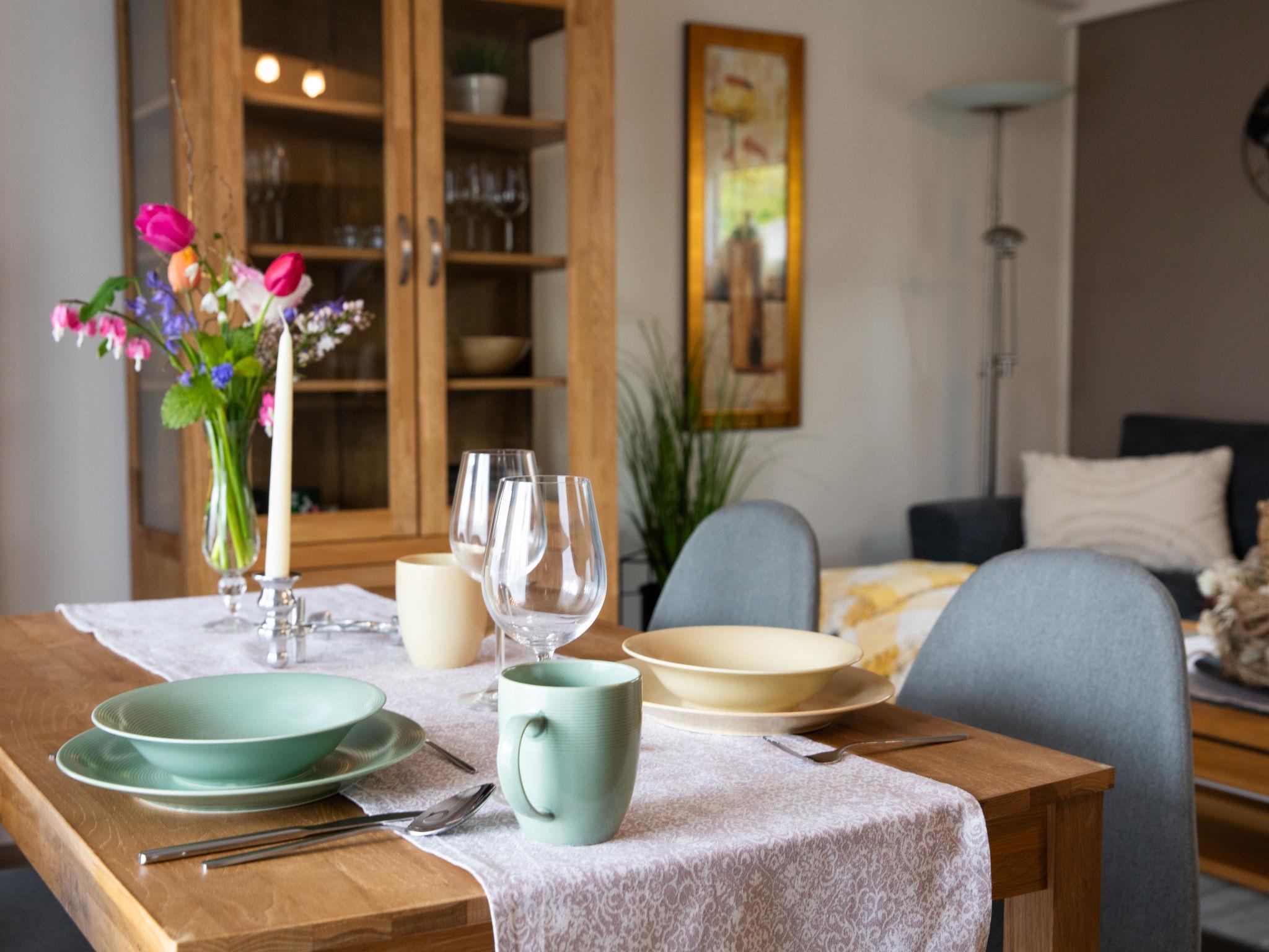 "Heimathafen", 2-room apartment 50 m2. Comfortable and modern furnishings: living/dining room with satellite TV (flat screen). Exit to the terrace. 1 room with 1 double bed (180 cm, length 200 cm). Open kitchen (oven, dishwasher, 4 ceramic glass hob hotplates, toaster, kettle, electric coffee machine). Shower/WC. Electric heating. Large terrace 20 m2. Terrace furniture. Facilities: washing machine (extra). Dryer (extra). Internet (WiFi, free). Please note: non-smokers only.