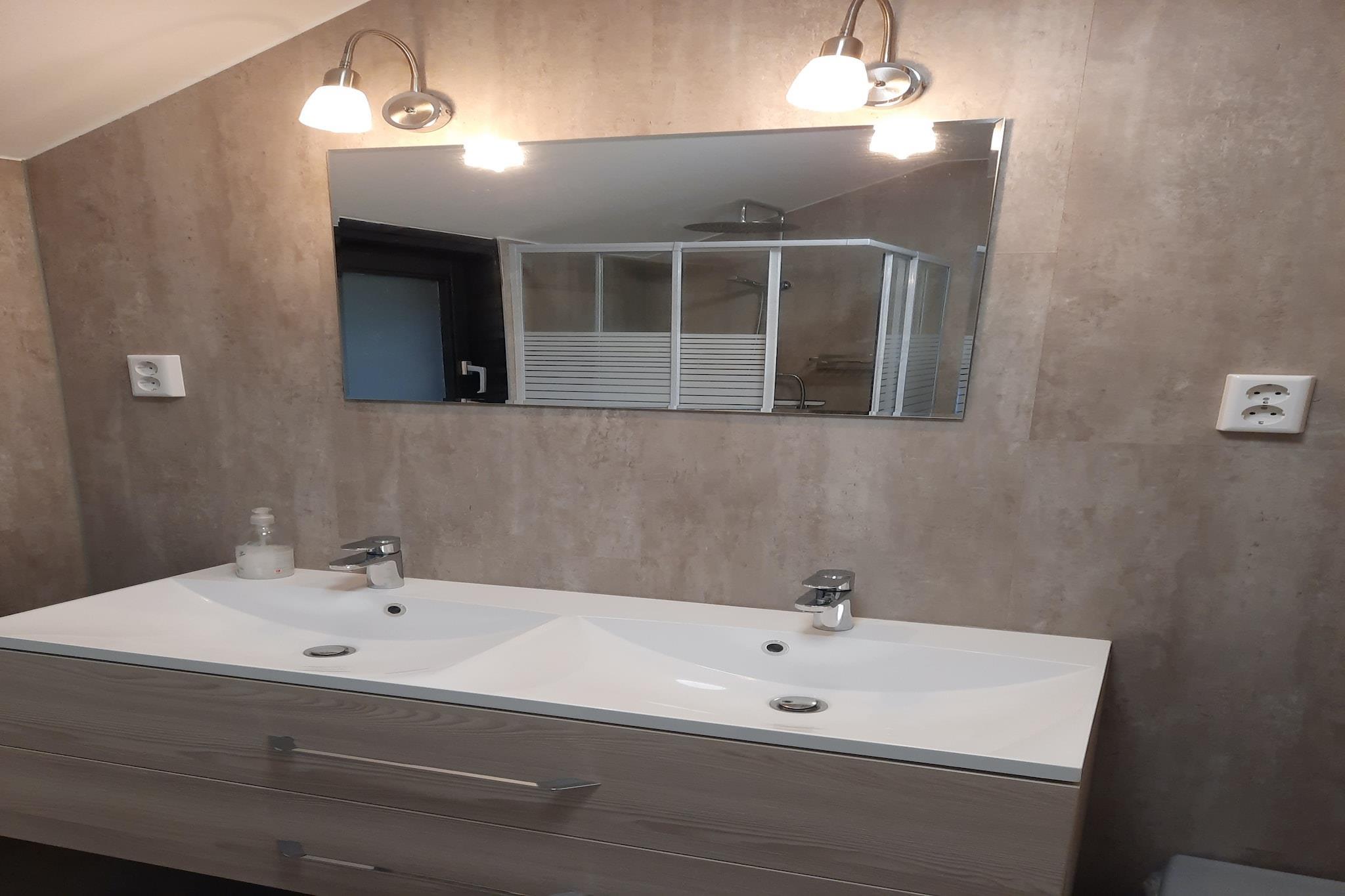 Ground floor: (Entrance, Living room(TV, decorative fireplace), Kitchen(electric kettle, toaster, cooker(4 ring stoves, induction), coffee machine(filter), oven, microwave, dishwasher, fridge-freezer), Living/diningroom, toilet(washbasin, toilet), toilet(washbasin, toilet), storage(fridge, freezer)) On the 1st floor: (bedroom(single bed), bedroom(single bed, single bed), bedroom(single bed, single bed), bedroom(double bed(180 x 200 cm)), bedroom(single bed, double bed(180 x 200 cm)), bathroom(shower, washbasin, toilet), bathroom(shower, washbasin, toilet)) balcony, heating(gas), terrace(private), garden(private, 500 m2), garden furniture, BBQ(charcoal), parking, pond, Sunscreen