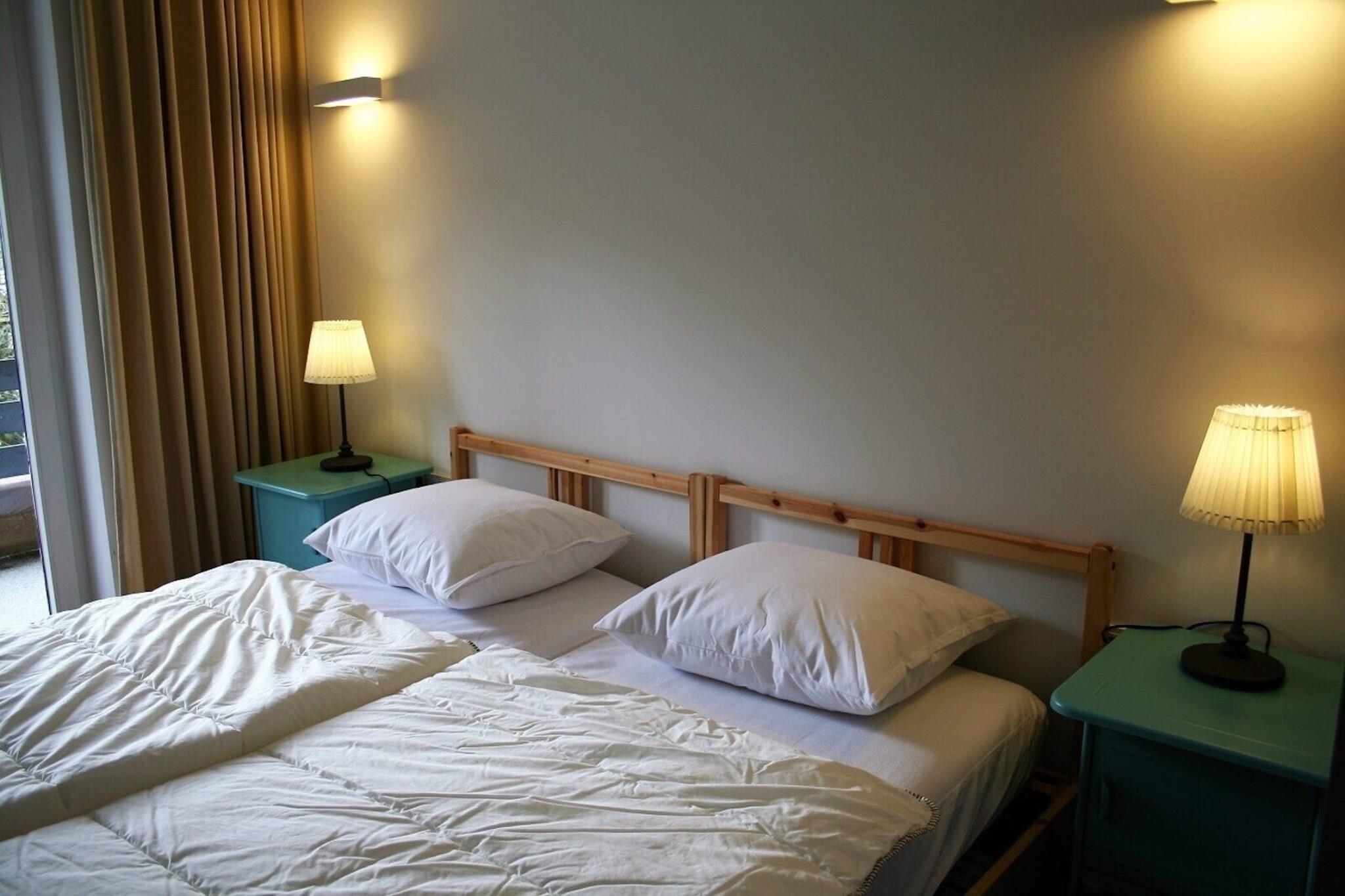 You enter this apartment through the spacious entrance area with cloakroom and have access to a bright living room with a comfortable living and dining area and a balcony. Adjacent to the living room is the luxurious kitchen, equipped with all modern conveniences and containing a washing machine and dryer. The apartment is suitable for 6 people and has 3 bedrooms. The master bedroom, with a double bed and ample storage space and access to the balcony, has an en-suite bathroom with sink, toilet and walk-in shower. The second bedroom has a double bed and the third bedroom has 2 single beds. Both bedrooms offer enough storage space and share a bathroom that is accessible from the hallway. The apartment has 2 parking spaces and a storage room where you can store your skis in winter. From the central entrance of the apartment complex you can reach the wellness area (accessible only to owners and guests of the apartment complex) with a heated swimming pool (free of charge), sauna (for a small fee), showers and changing rooms. Even as a walker you can go in all directions; You can take endless walks directly from the apartment.