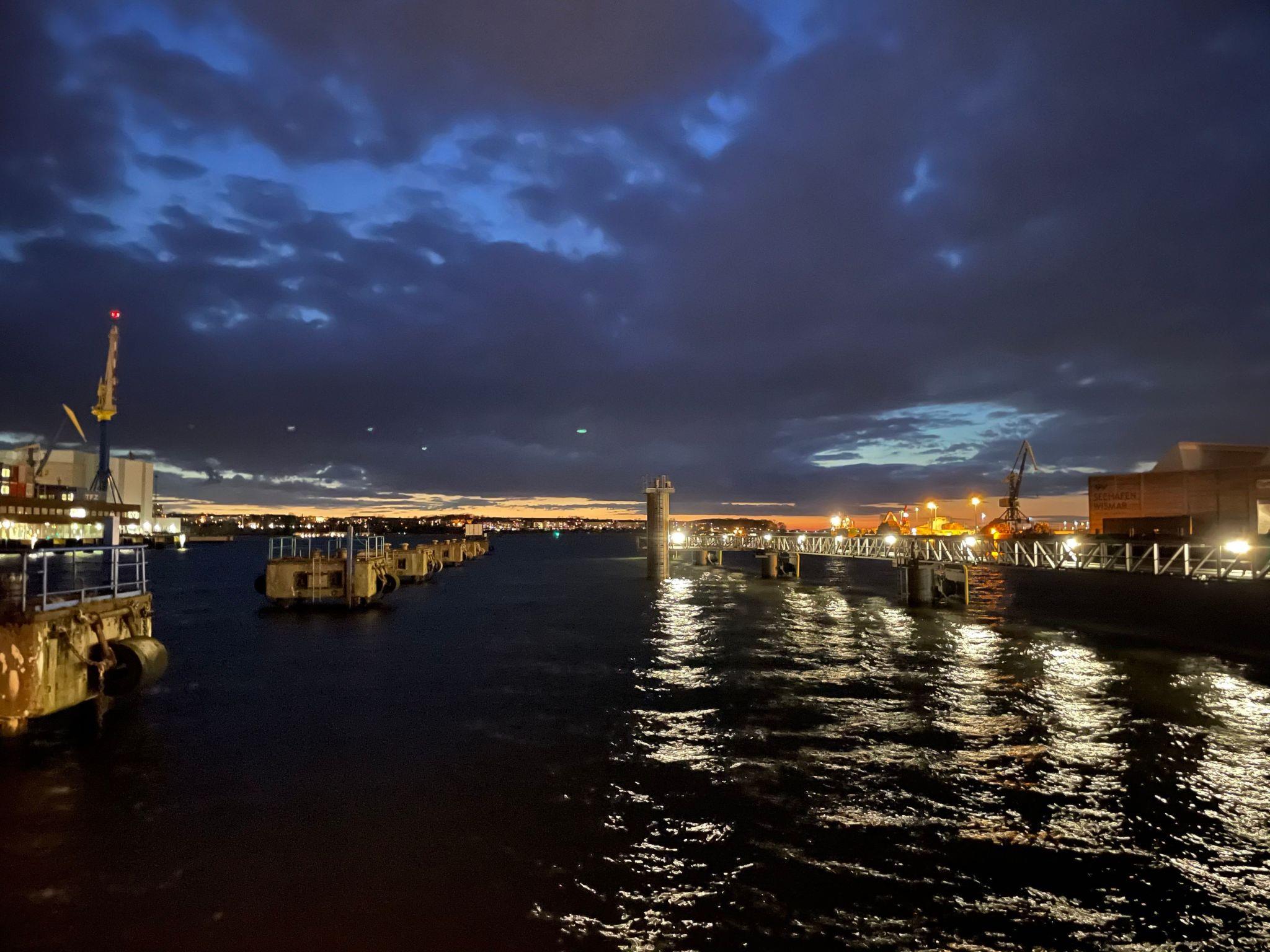 The charming outdoor area with a small but lovely private terrace invites you to enjoy the lively harbour flair with sea air and chattering seagulls. Here you can enjoy a glass of wine or a coffee in peace and quiet while watching the hustle and bustle of the industrial harbour. Thanks to floor-to-ceiling, soundproofed windows, even the youngest guests have the opportunity to watch the ships arriving and departing, which is always an exciting discovery.