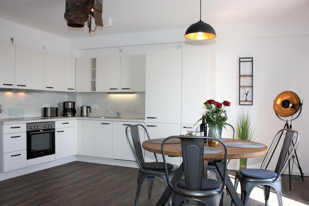 Www.fewo-wismar-kuehlungsborn.de Der Speicher wurde in ein Luxus-Ferien-Domizil der absoluten Extraklasse umgewandelt. Wir bieten unseren anspruchsvollen Gästen den Blick aus dem fünften Stockwerk auf die einfahrenden Kreuzfahrtschiffe sowie eine herrliche, atemberaubende Aussicht auf den Alten Hafen und die wunderschöne, historische, zum UNESCO-Weltkulturerbe zählende Altstadt von Wismar. Das Appartement in exponierter Lage verfügt neben einem Doppelbett über eine hochwertige Schlafcouch mit einer 160 cm breiten Liegefläche und bietet bis zu vier Personen bequem Platz. Weiterhin bietet der Ohlerich Speicher seinen Premiumgästen im Erdgeschoss einen großzügigen Empfangsbereich mit Restaurant und Sonnenterrasse.