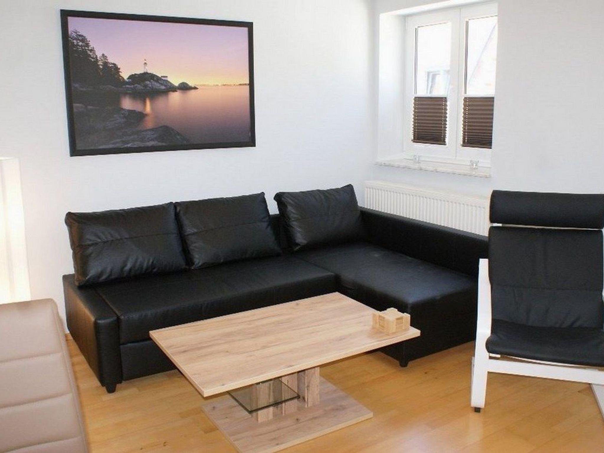 - Wohnzimmer mit großem Sofa (Schlafsofa ausziehbar als Aufbettung für 2 Personen), Flat-TV, Essbereich für 4 Personen