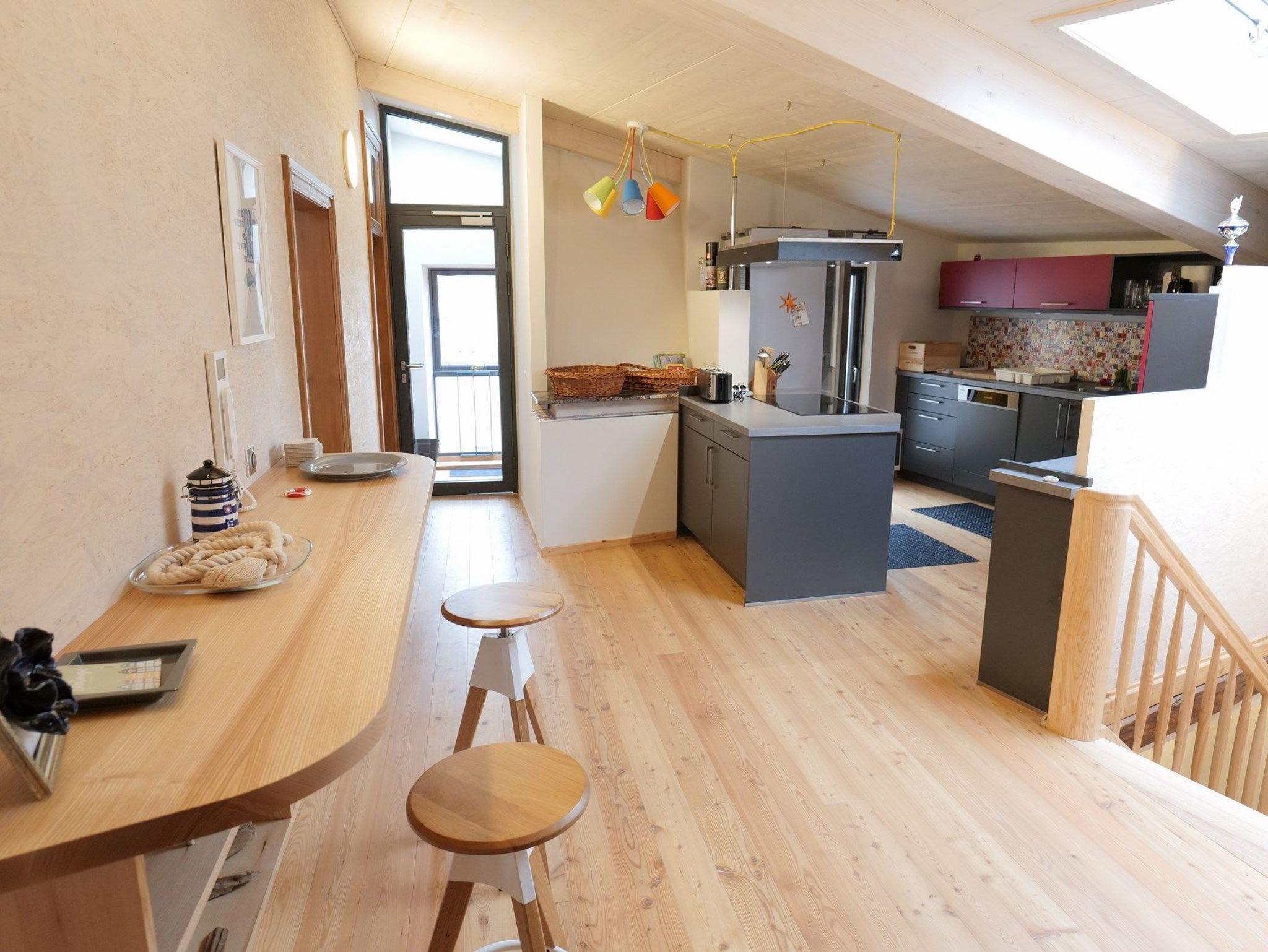 - Küche mit Essbar, ausgestattet mit 4 Platten-Ceranfeld mit Dunstabzugshaube, Geschirrspüler, Backofen, Kühlschrank mit Gefrierfach, Kaffeemaschine, Wasserkocher, Toaster, Besteck, Geschirr, Gläser uvm.