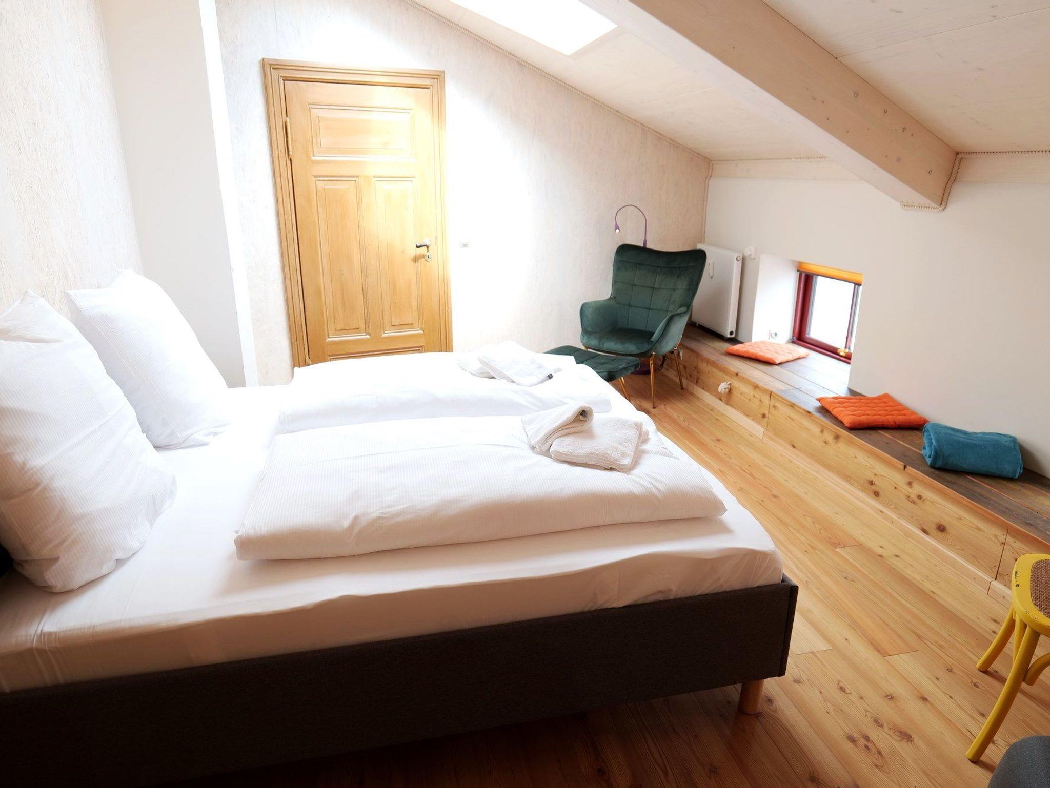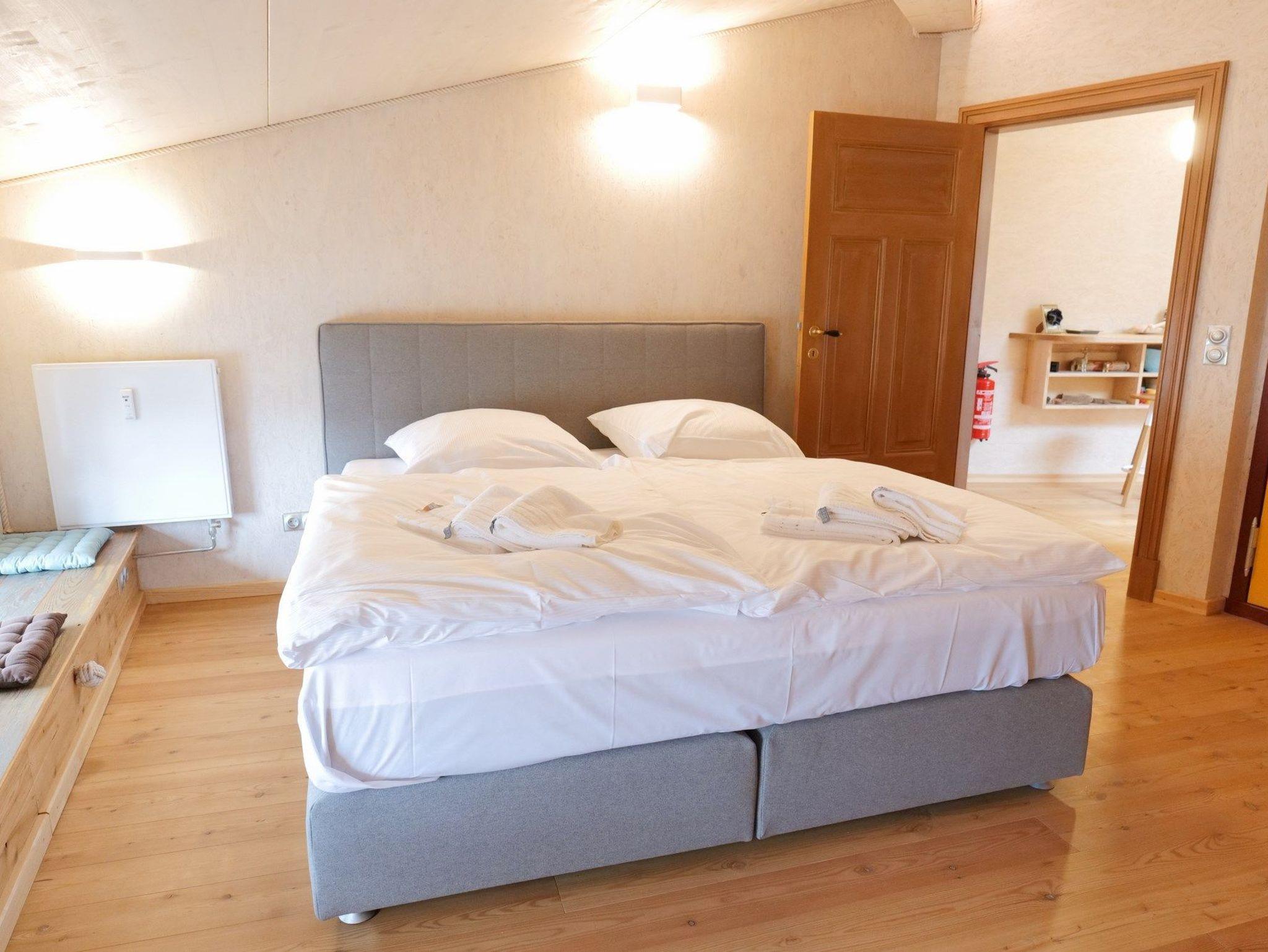 - Schlafzimmer 3 mit Doppelbett (1,80 x 2,00 m), Einsitzercouch, Kamin (Achtung, das Schlafzimmer 3 ist das Durchgangszimmer zum Schlafzimmer 4)
