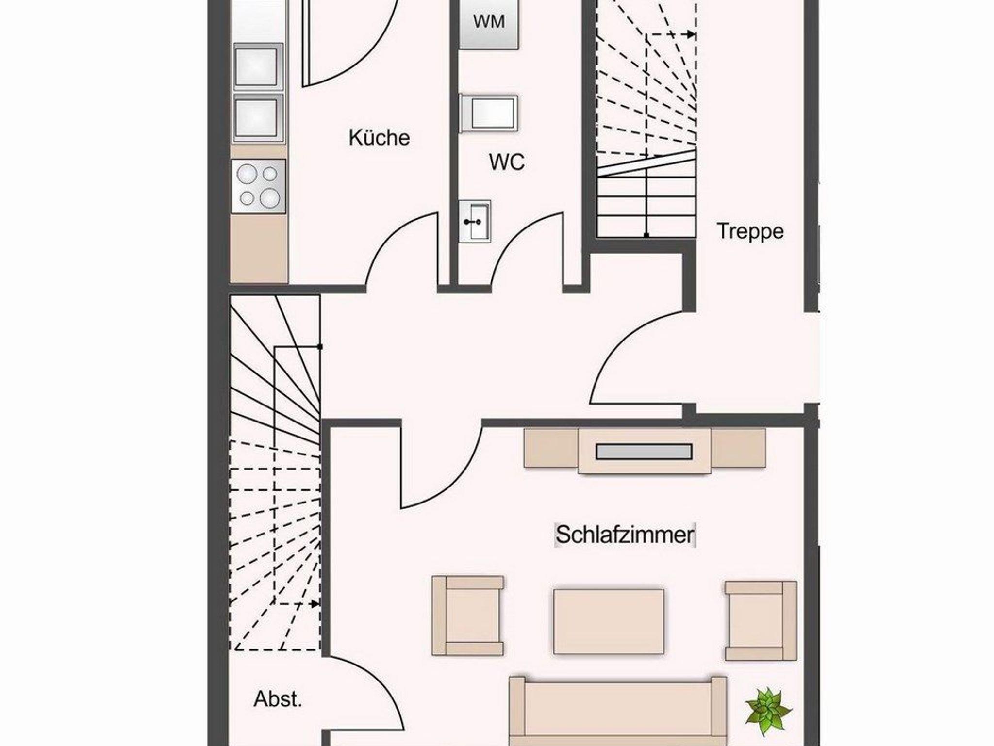 Bitte beachten Sie, dass Sie 2 steile Treppen gehen müssen, bevor Sie in die Wohnung gelangen.