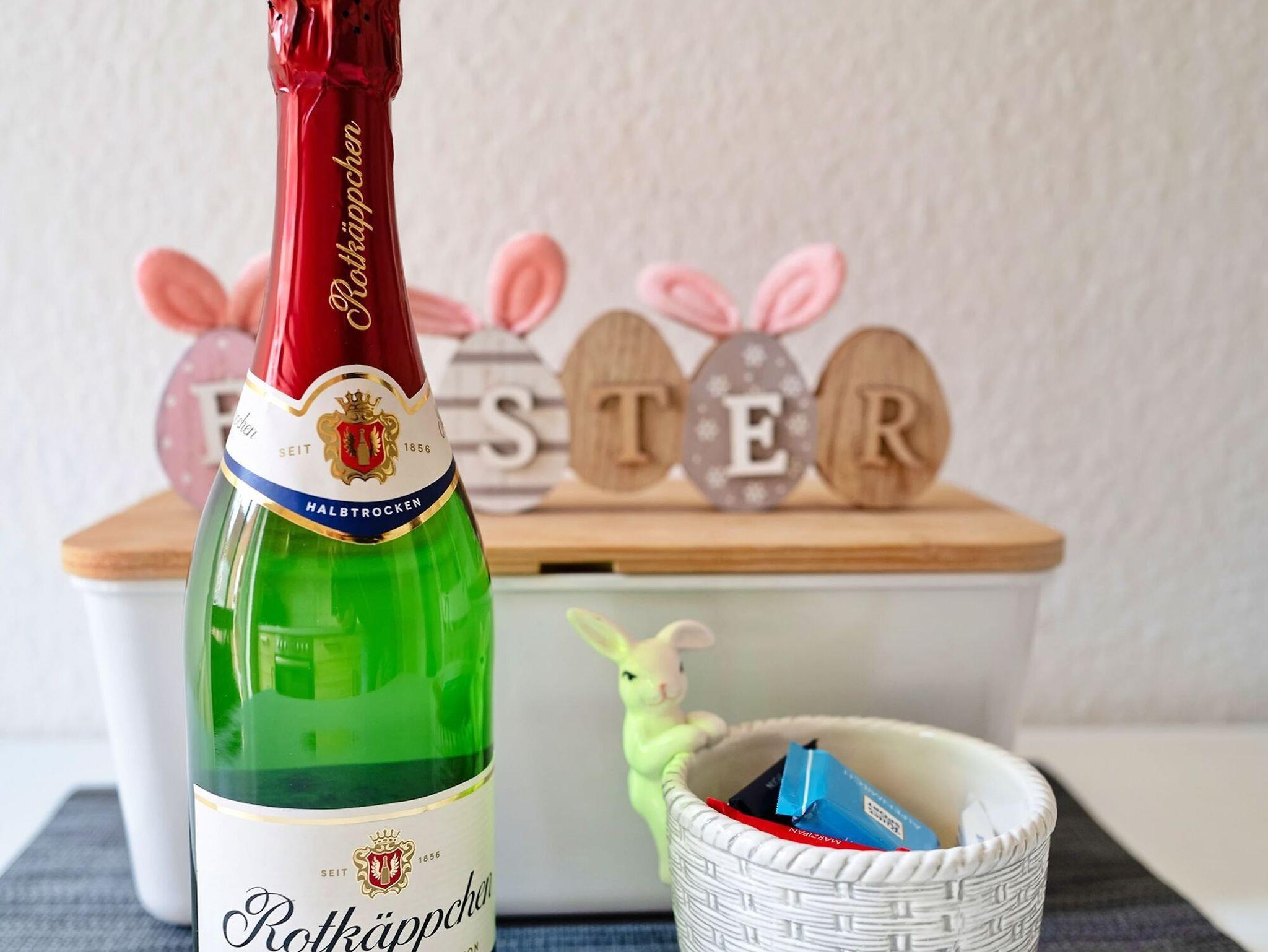 - Küche ausgestattet mit Toaster, Kaffeemaschine, Wasserkocher, 4-Platten-Ceran-Herd, Backofen, Besteck und Geschirr, Kühlschrank
