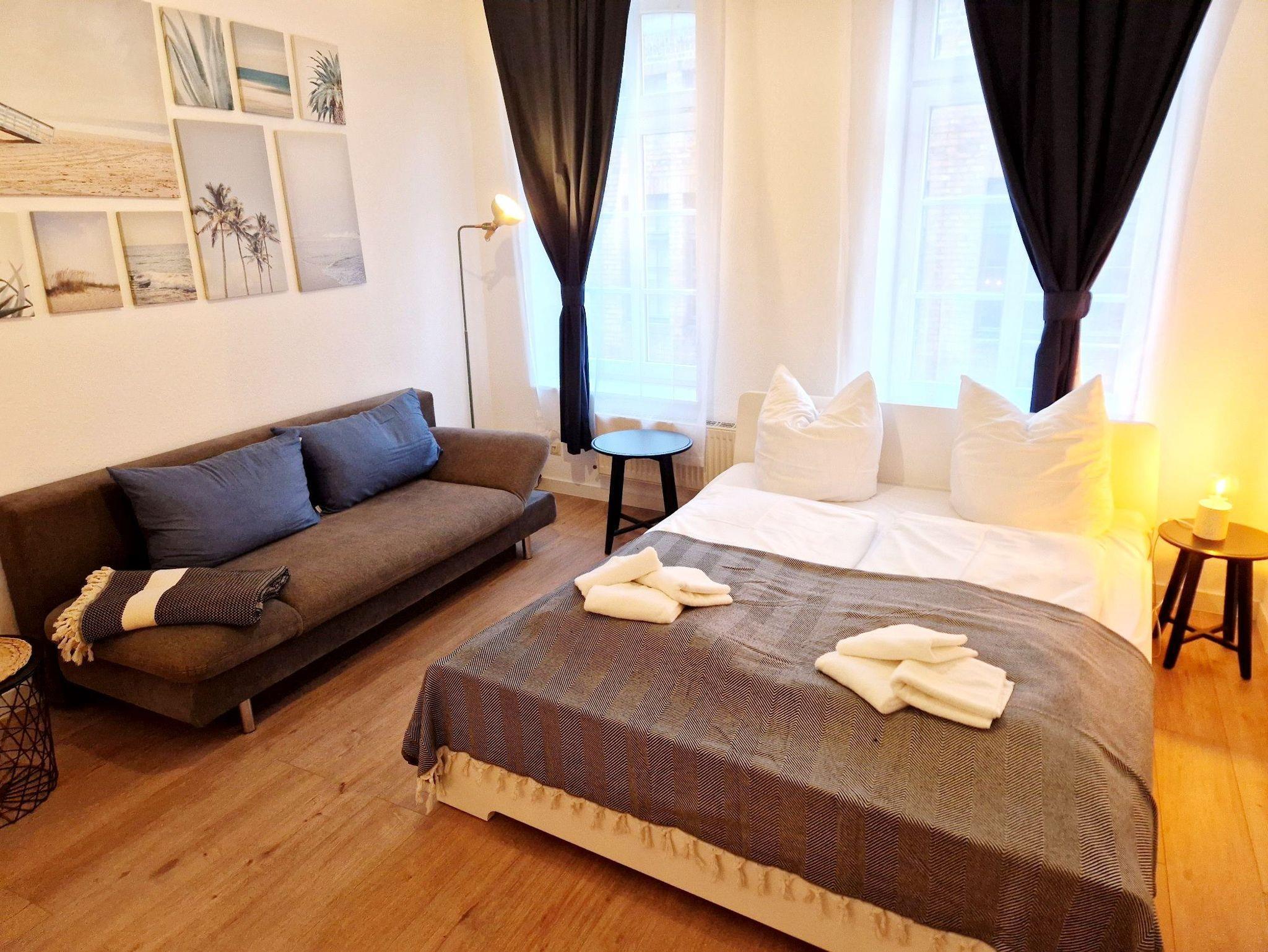 Das Apartment ist perfekt gelegen inmitten der historischen Altstadt von Wismar, aber dennoch in einer verkehrsarmen Seitenstraße und einen Steinwurf von der Haupteinkaufstraße entfernt. In direkter Umgebung gibt es zahlreiche Cafés, Bars, Restaurants und Einkaufsmöglichkeiten. Der historische Straßenzug wird auch öfter für Dreharbeiten genutzt (u.a. SOKO Wismar).