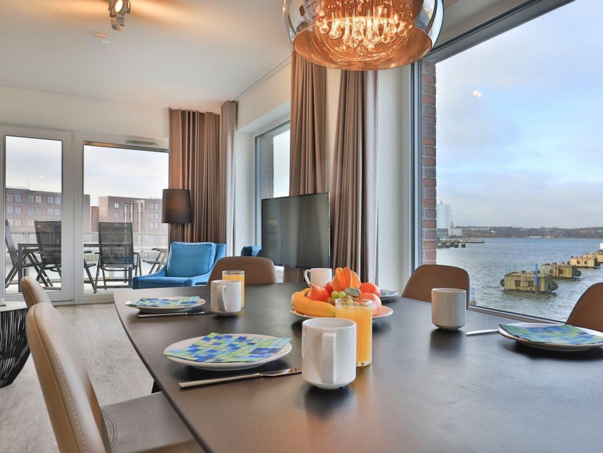 Freuen Sie sich auf einen entspannten Aufenthalt in dieser sehr geräumigen 3-Zimmer-Ferienwohnung ? Hafenspitze1- mit einer Wohnfläche von 98qm, die zudem von der Loggia den Blick über den Hafen bietet. Lichtdurchflutet empfängt Sie ein kombinierter und hochwertig möblierter Wohn-/Essbereich mit bodentiefen Fensterfronten sowie integrierter, voll ausgestatteter Küchenzeile mit Herd, Backofen, Mirowelle, Kühlschrank mit Gefrierfach, Spülmaschine und Kleingeräten wie Kaffeemaschine, Wasserkocher usw. Sommerlichen Wärmeschutz bieten Ihnen Rollläden mit elektrischer Bedienung.