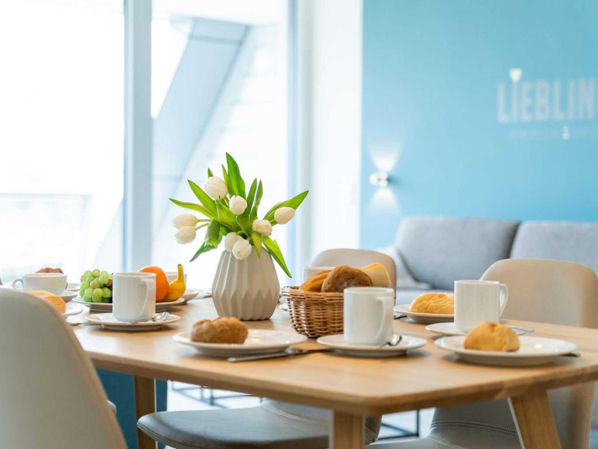 Weitere Wäschepakete sind gegen Gebühr zu buchbar. Die Nichtraucher Wohneinheit befindet sich in der 3. Etage und ist mit dem Personenaufzug leicht zu erreichen. Sollten Sie mit dem PKW anreisen, so befinden sich Parkmöglichkeiten gegen Gebühr im öffentlichen Parkhaus am Alten Hafen in ca. 300 Meter.