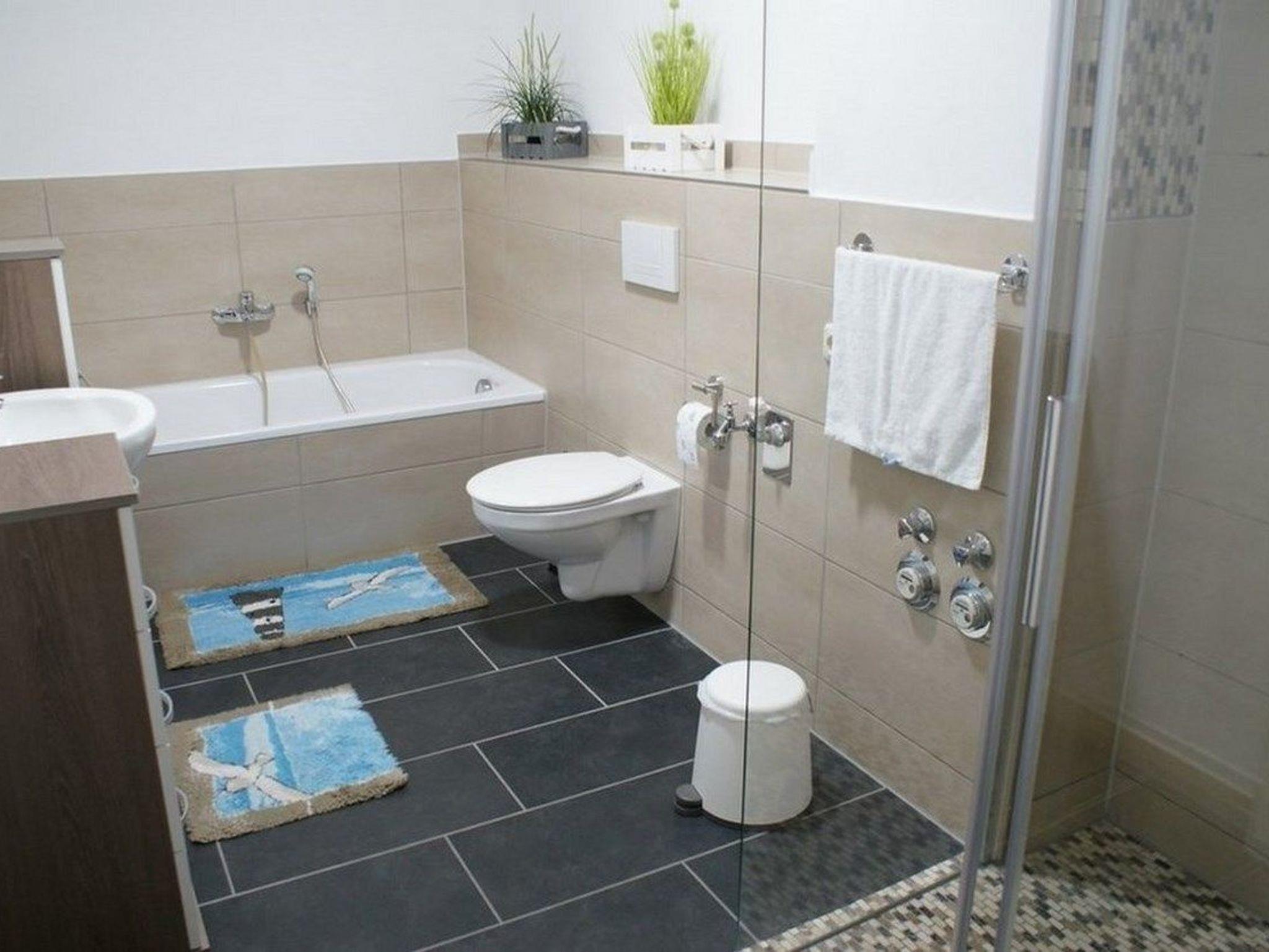 - Vollbad mit Badewanne, Dusche, WC, Spiegel und Ablage, Waschmaschine