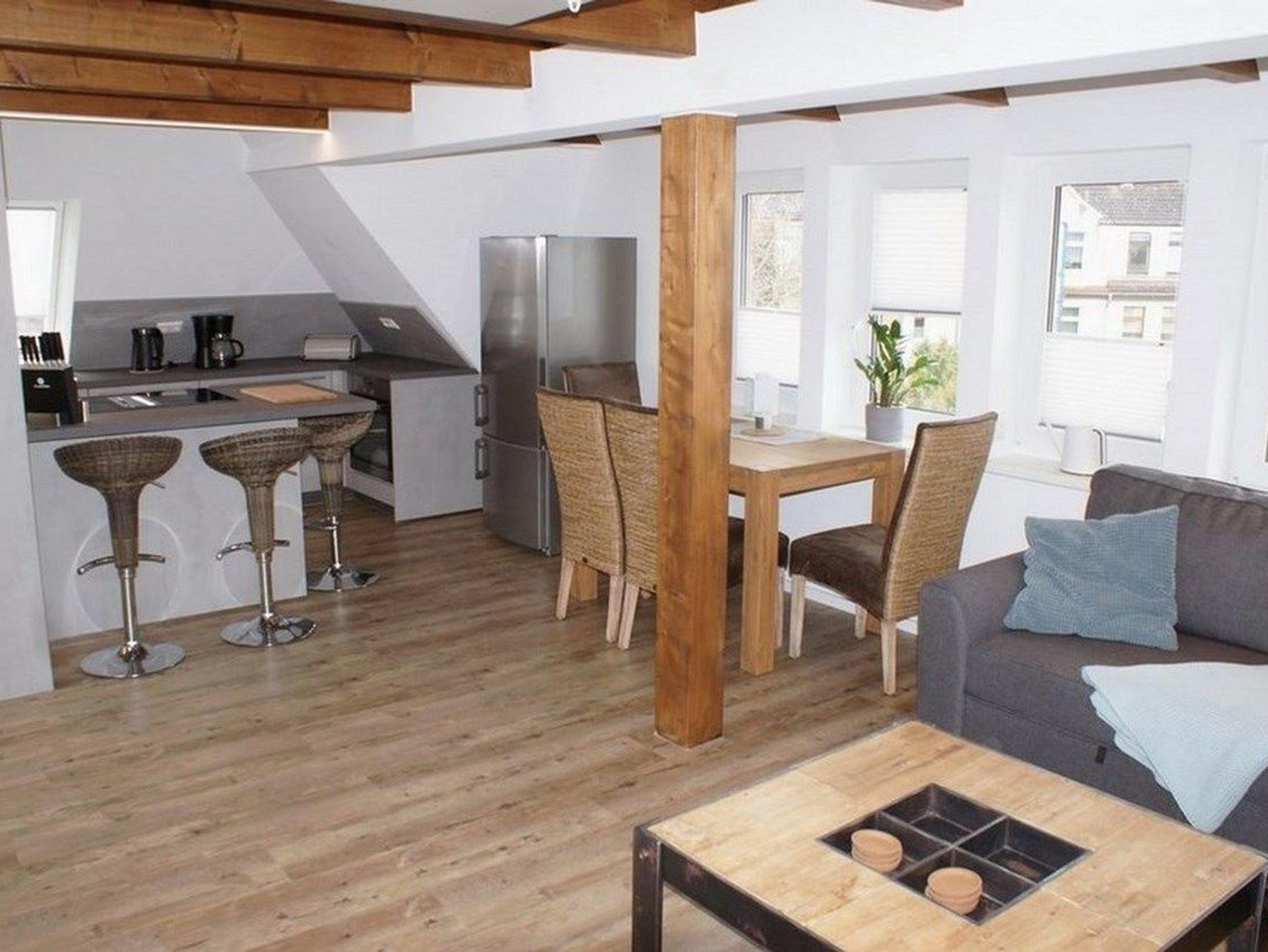 Mittelpunkt unserer Wohnung bildet das großzügige Wohnzimmer mit bequemer Couchlandschaft, großem Flat-TV, gemütlichen Essbereich für 4 Personen und einer modernen offenen Küche.