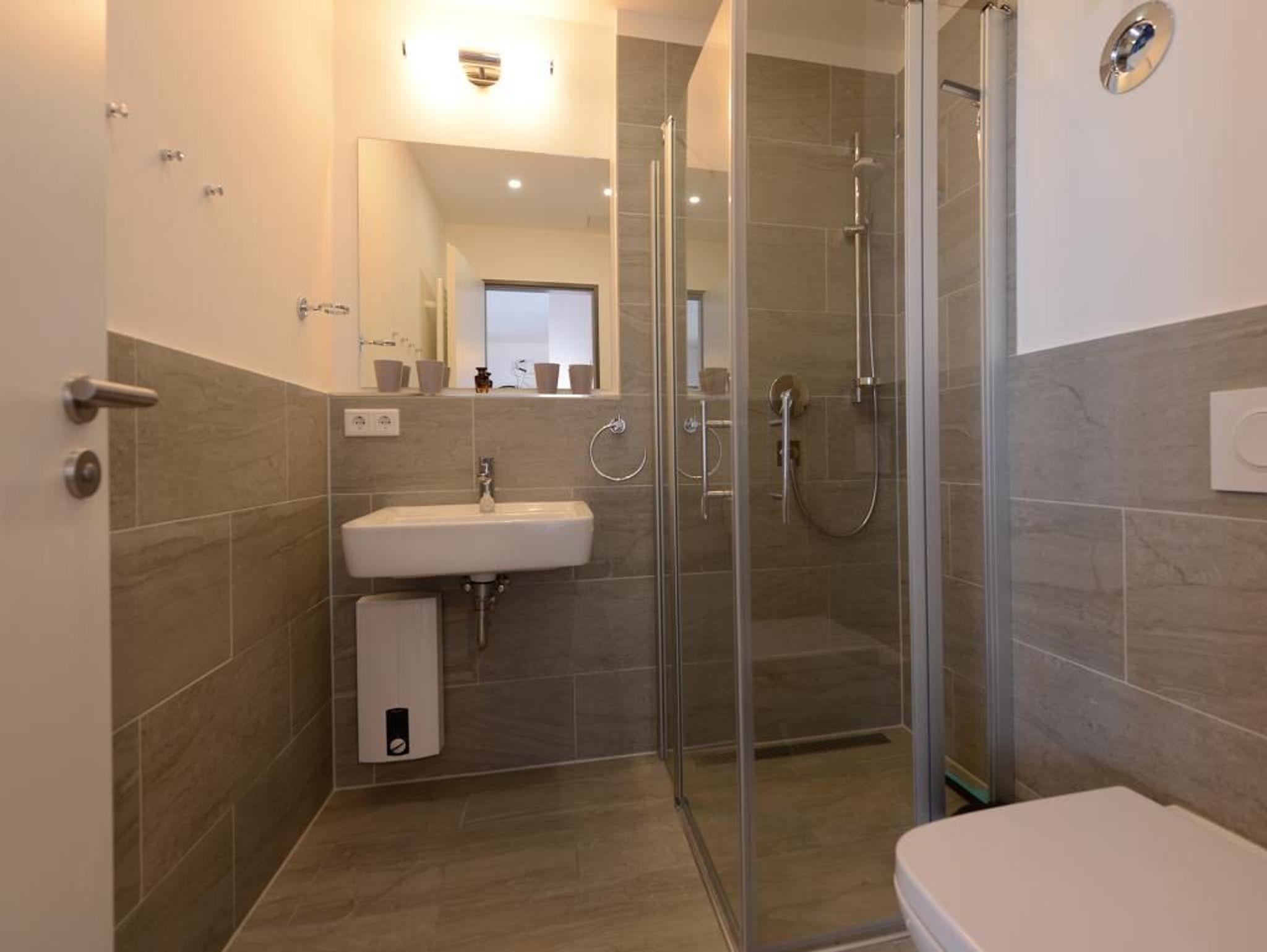 Das hochwertig eingerichtete 2-Zimmer-Appartemnet befindet sich in der 1. Etage dieses außergewöhnlichen Gebäudes und bietet einen Urlaub der Extraklasse. Auf 57 m² Wohnfläche können 4 Personen einen unbeschwerten Urlaub verbringen. Das Appartement verfügt über einen hellen, geschmackvoll eingerichteten Wohnraum mit Fernseher und integrierter Küche, die voll ausgestattet ist (u.a. mit Geschirrspüler, Mikrowelle, Kaffeemaschine, Wasserkocher).Von dort aus haben Sie Zugang auf den Balkon. Das moderne Schlafzimmer ist mit einem Doppelbett eingerichtet. Des Weiteren verfügt das Appartement über ein Duschbad in hochwertiger Ausführung.