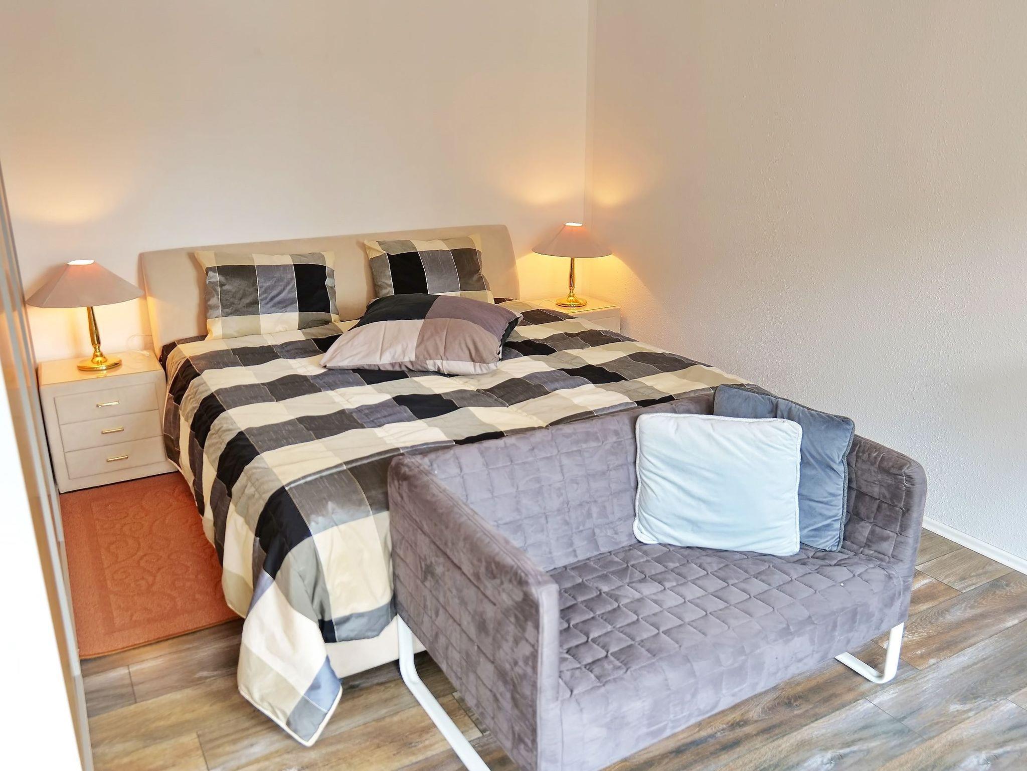 ? 1 Wohn-/ Schlafzimmer für 2-3 Personen mit Doppelbett (1,80 x 2,00 m, abgetrennter Sichtbereich), Einzelbett, Couch (ausziehbar zur Schlafcouch), Tisch, Schlafsessel, Anbauwand