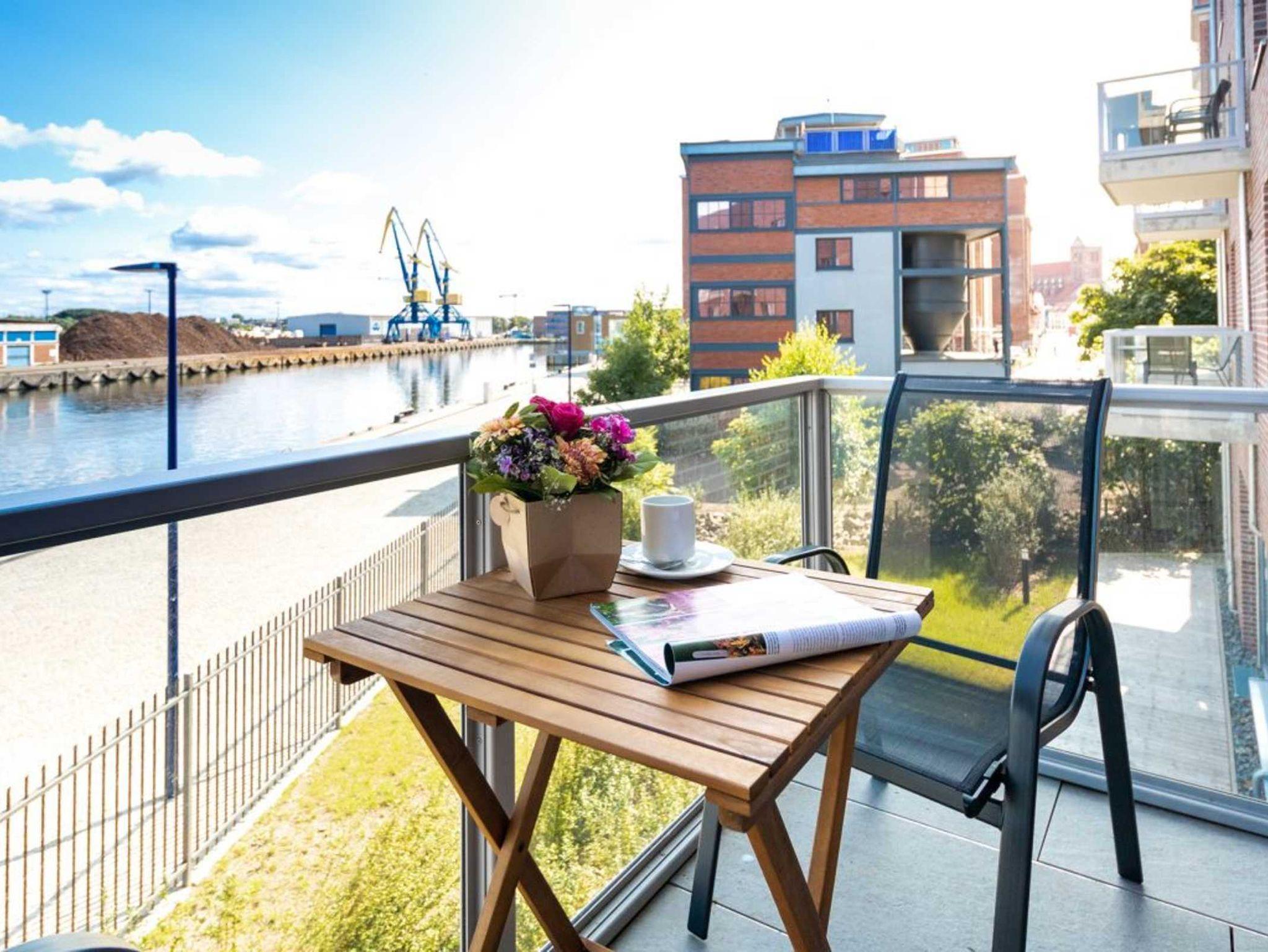 1 Balkon mit Holzhafenblick