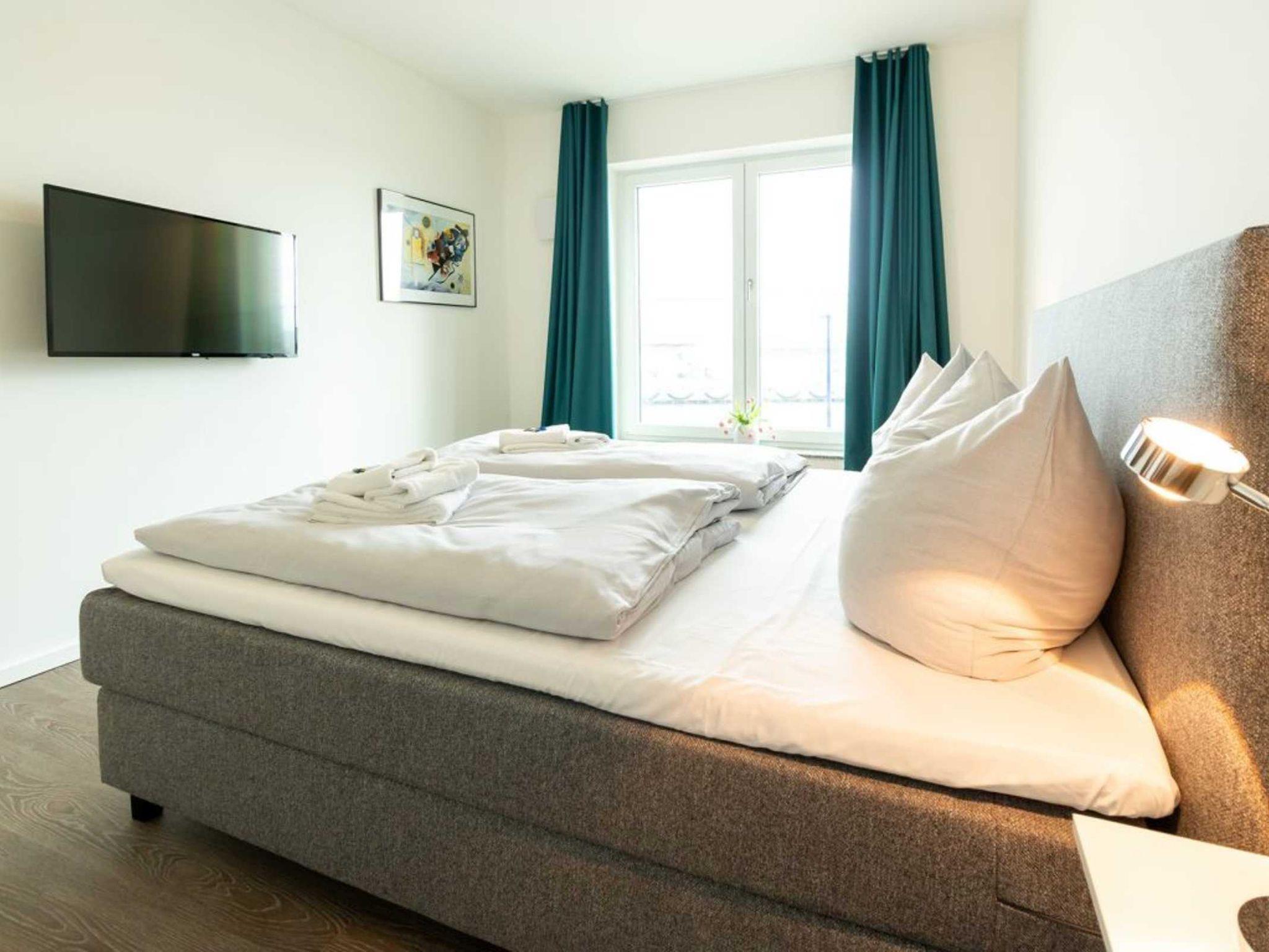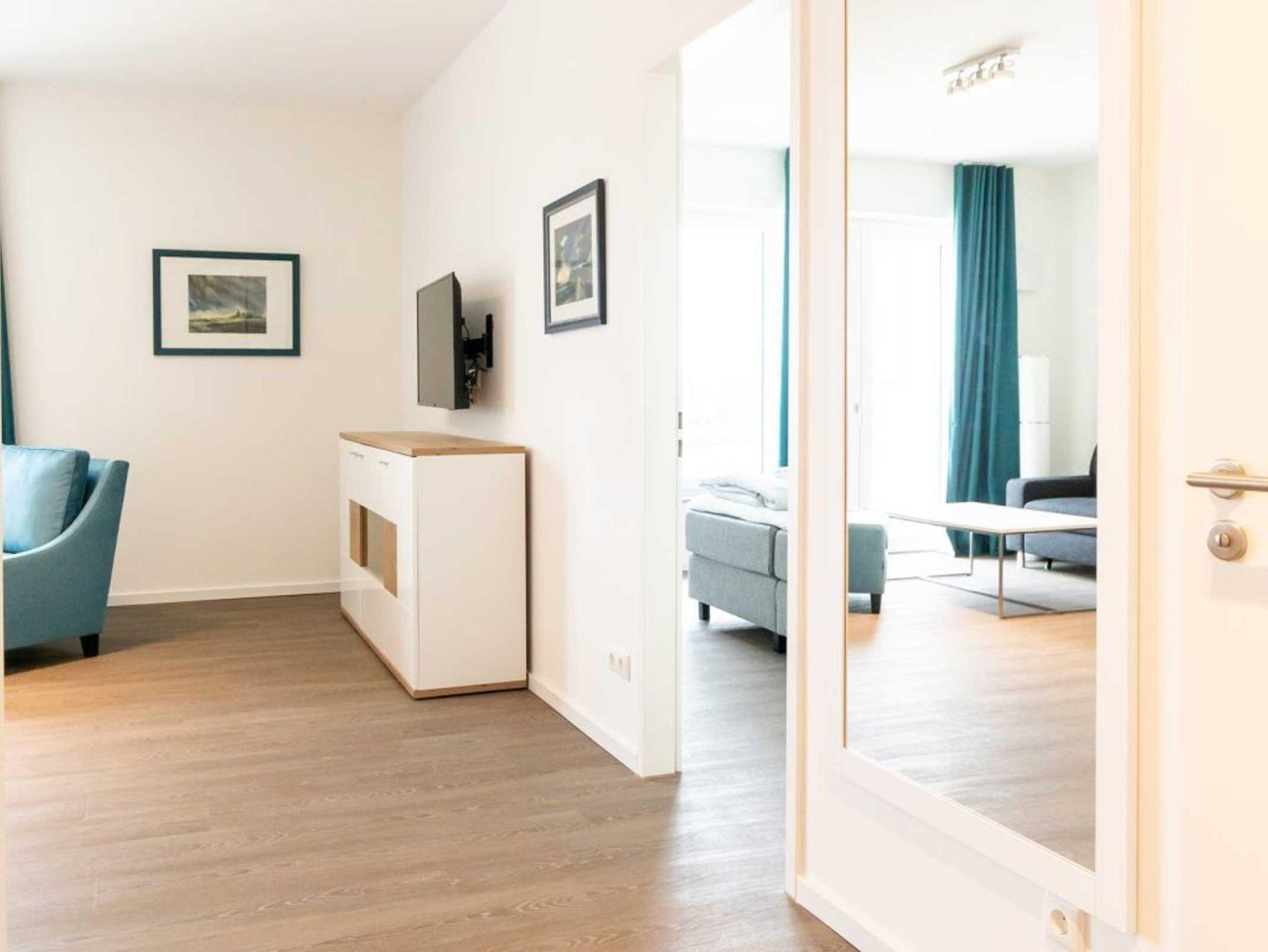Im modernen Ambiente begrüßt Sie mit einer geräumigen Wohnfläche von 59qm dieses schicke 2-Zimmer-Appartement mit Balkon in der Hafenspitze 4. Die attraktive Ferienwohnung ist auf eine Belegung mit bis zu 4 Personen ausgelegt. Der geräumige Wohn-/ Essbereich mit bodentiefen Fenstern, lässt Sie komfortabel möbliert und zudem mit internetfähigem Flatscreen einen sehr angenehmen Aufenthalt genießen. Zwei zusätzliche Schlafmöglichkeiten, falls Sie mit mehr als 2 Personen anreisen möchten, sind vorhanden. WLAN steht kostenfrei zur Verfügung.