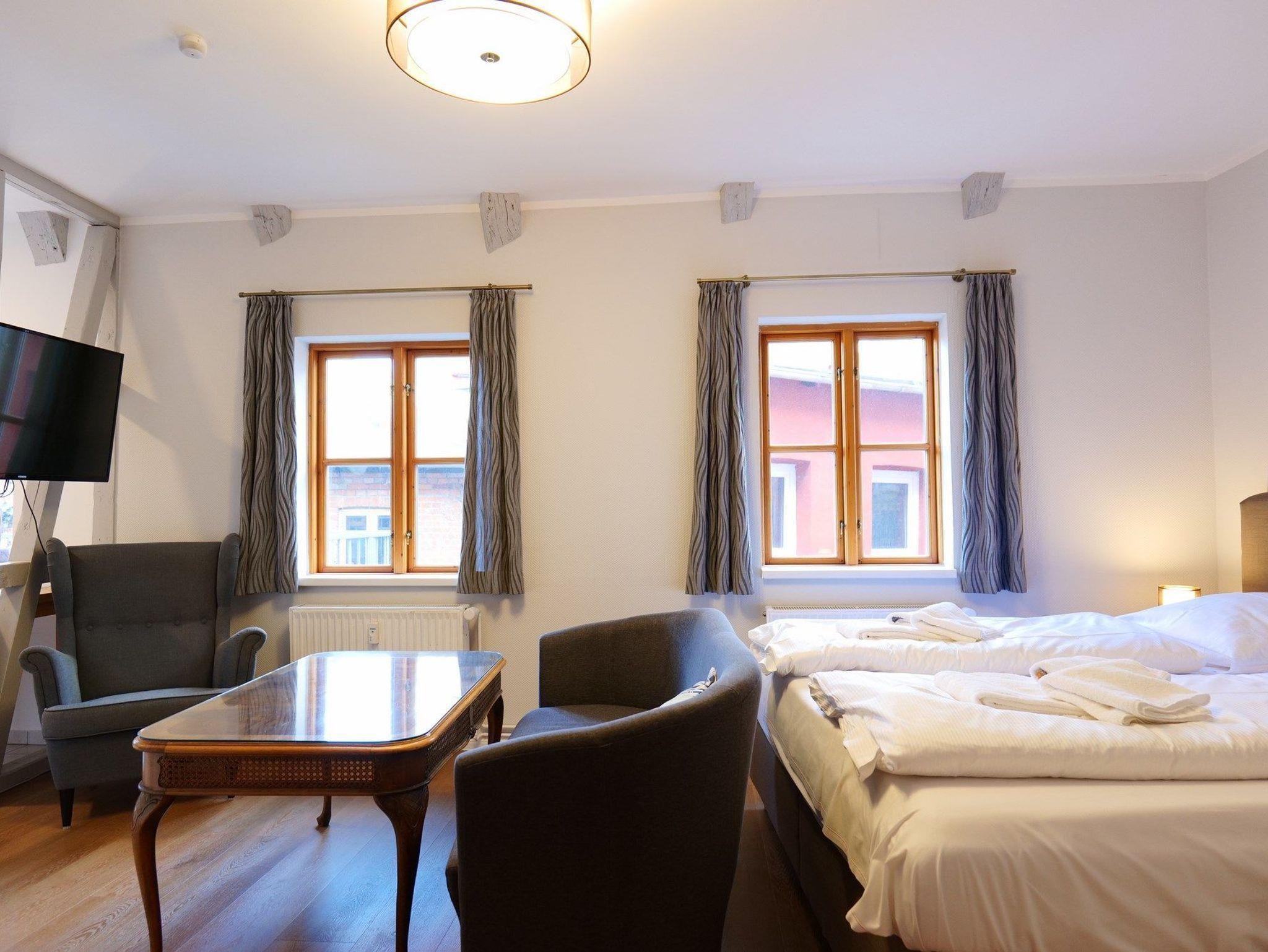Auch die anderen gotischen Kirchen, das Welterbehaus und der imposante Marktplatz mit seinen stattlichen Giebelhäusern sind wie auch der Hafen in wenigen Minuten fußläufig zu erreichen.
