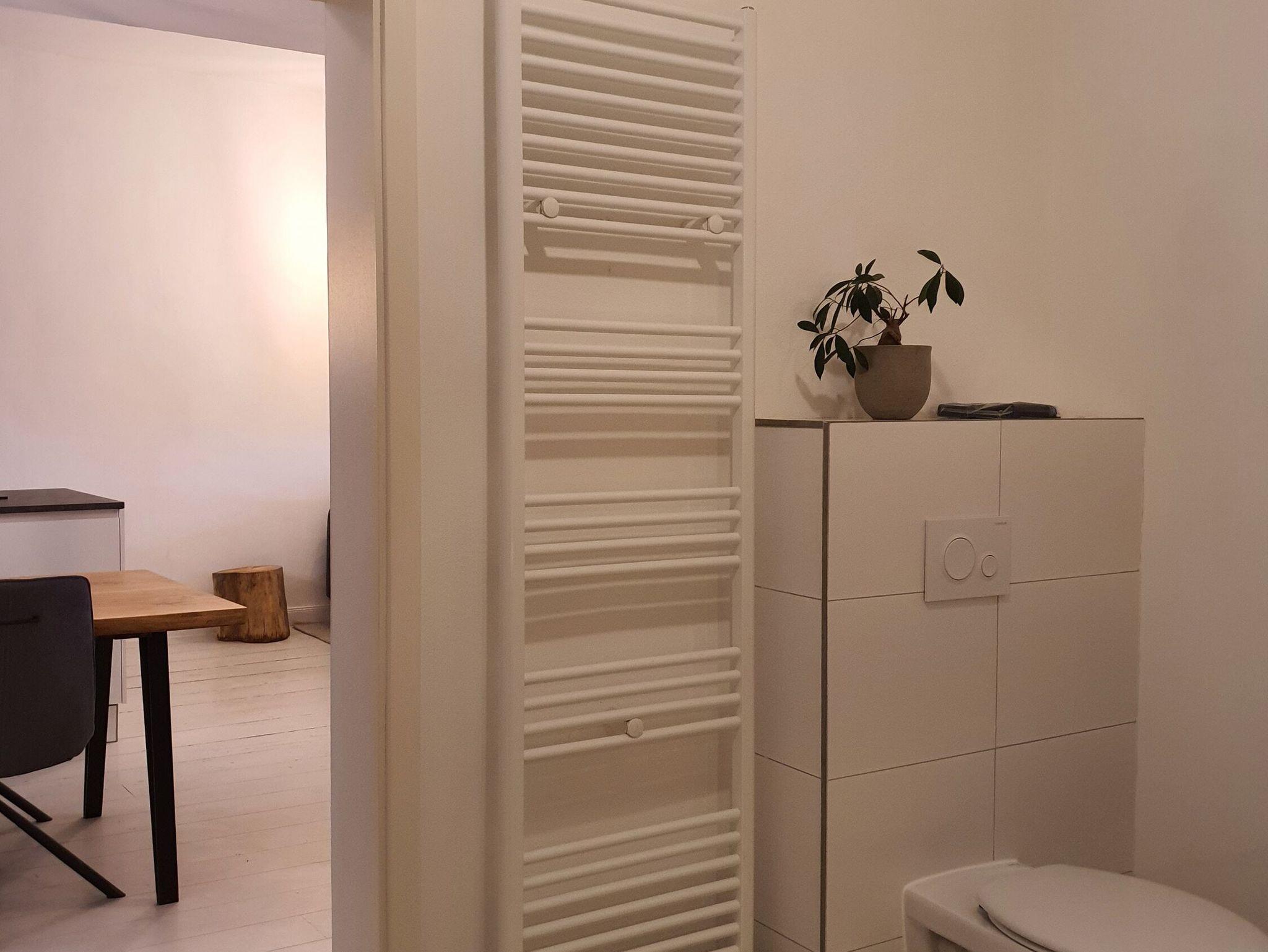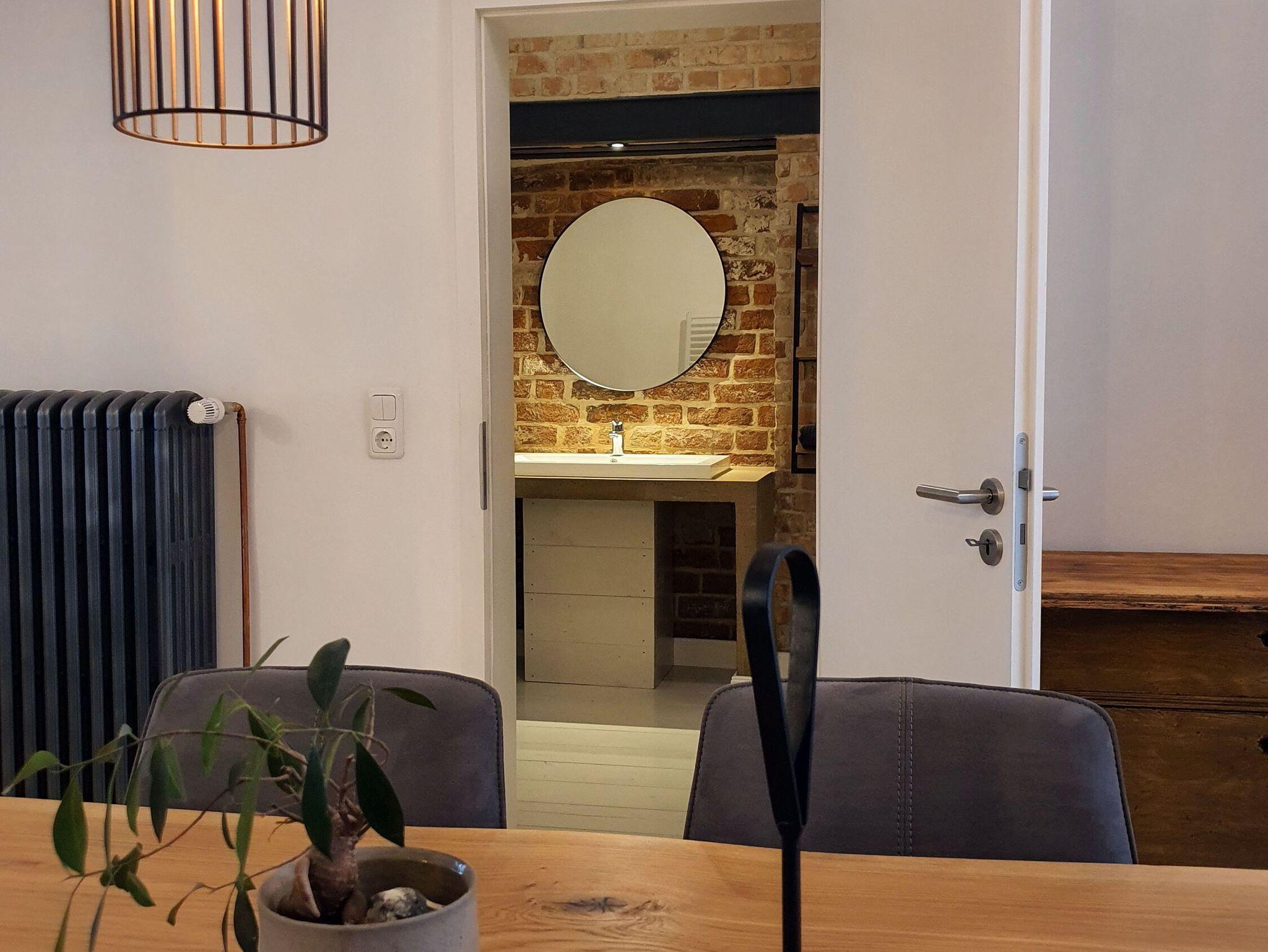 Die Ferienwohnung war bis vor kurzen noch ein Geschäft mit Wohnatelier, der Schauraum zur Straße steht unseren Gästen zum Abstellen Ihrer Fahrräder, als Schlechtwetterraum für Kinder oder Ähnlichem zur Verfügung. Die Wohnung selbst befindet sich direkt hinter dem Schauraum und öffnet sich zum Innenhof, der den Gästen zur Verfügung steht.