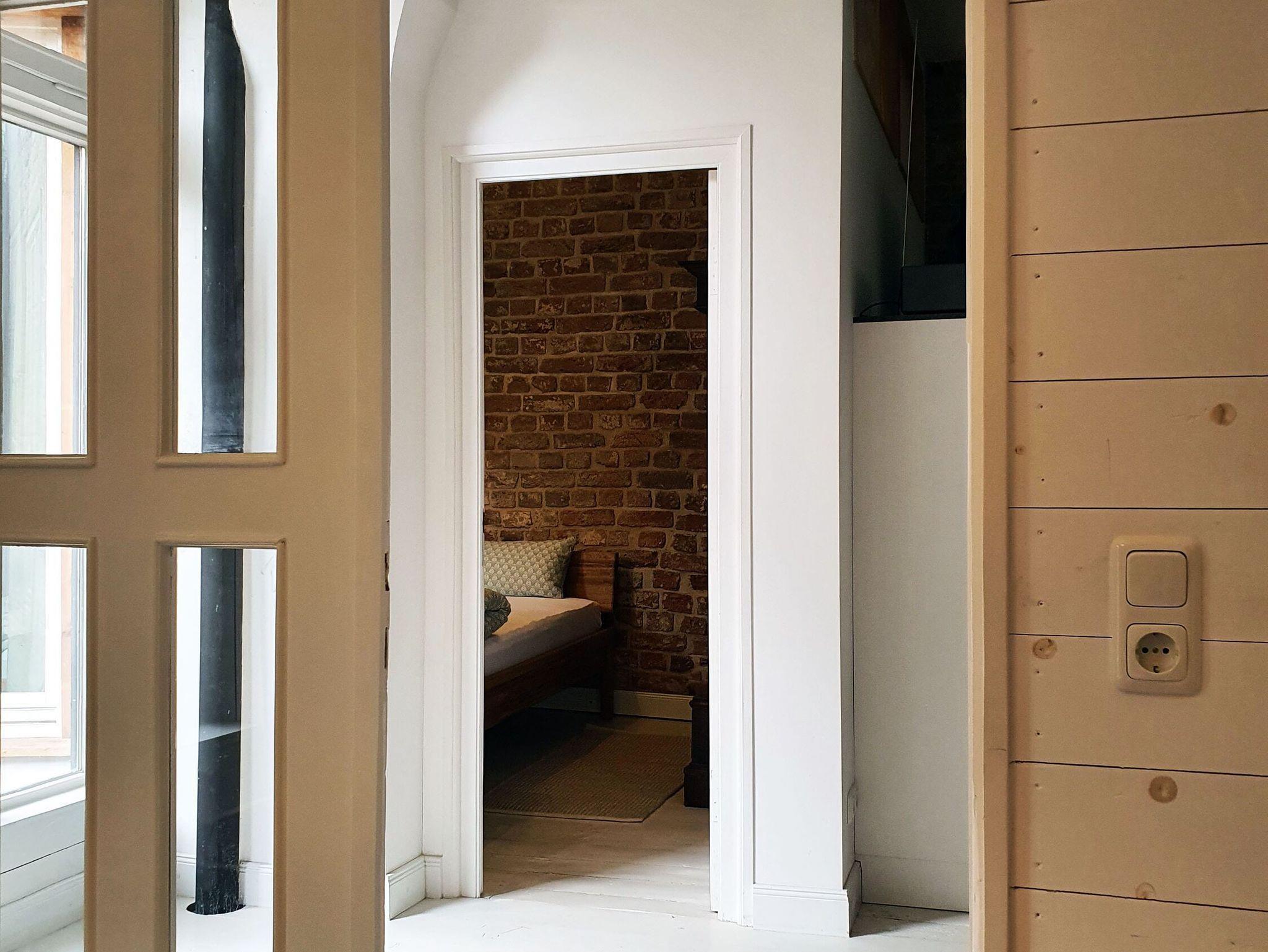 Die Wohnung befindet sich im Erdgeschoss eines historischen Stadthauses in dem man den Zeitgeist der letzten Jahrhunderte spüren kann. Im Hof können Besucher einen typischen Wismarer Innenhof einer Möbeltischlerei aus der Zeit des späten 19. Jh. bis Mitte des 20. Jh. in seiner Originalform erleben, der von einer mit Efeu berankten spätmittelalterlichen Hofmauer zur Löwenapotheke begrenzt wird.