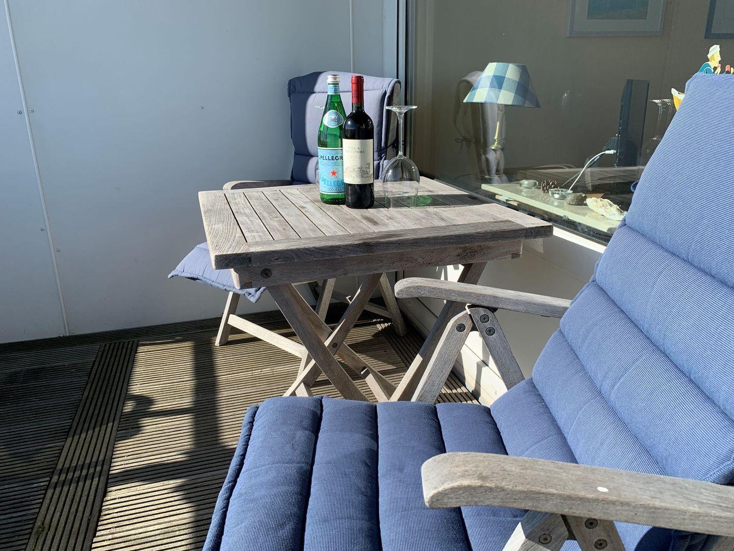 Das geschmackvoll eingerichtete Wohn-/Esszimmer hat einen Ausgang zum Balkon mit Meerblick in Richtung Hallig Hooge und der Insel Pellworm. In der komplett ausgestatteten Küche können sie ihre Mahlzeiten zubereiten. Bei der Zubereitung ihres Kaffees können sie zwischen normaler Maschine und Nespressomaschine entscheiden. Das Schlafzimmer auf der Empore ist mit einem Doppelbett und einem Kleiderschrank sowie stilvollen Accesoires ausgestattet..Das zweite Schlafzimmer ist ebenfalls mit einem Doppelbett ausgestattet.