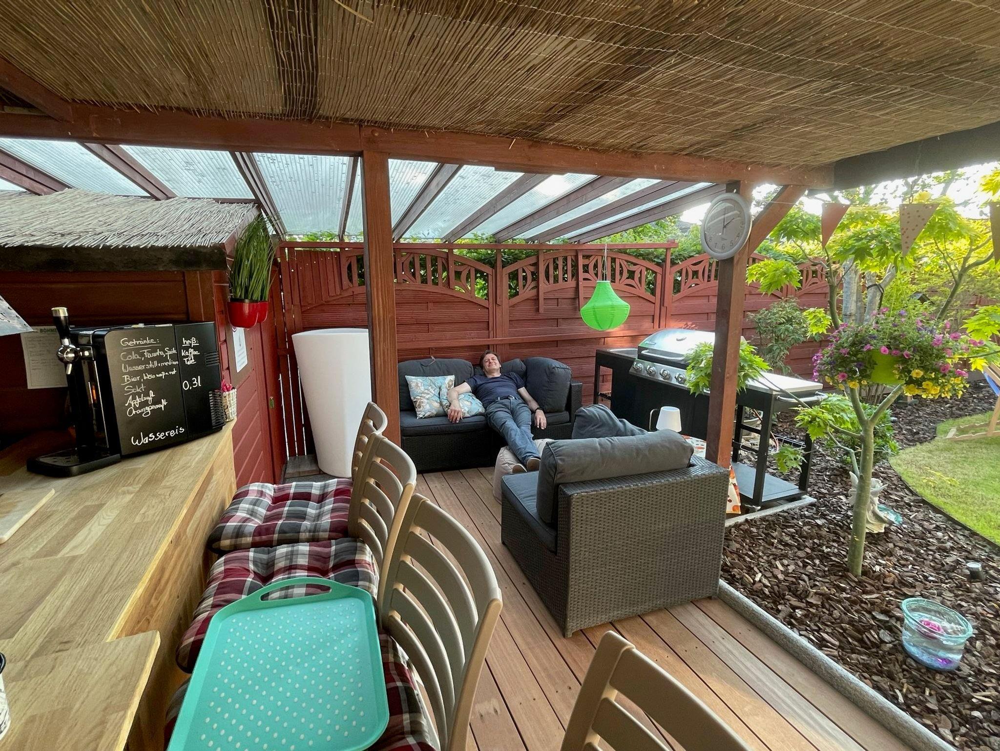 • Großer Gemeinschaftsgarten mit rustikaler Bar, Grillplatz & gemütlichen Sitzecken und Hängematte