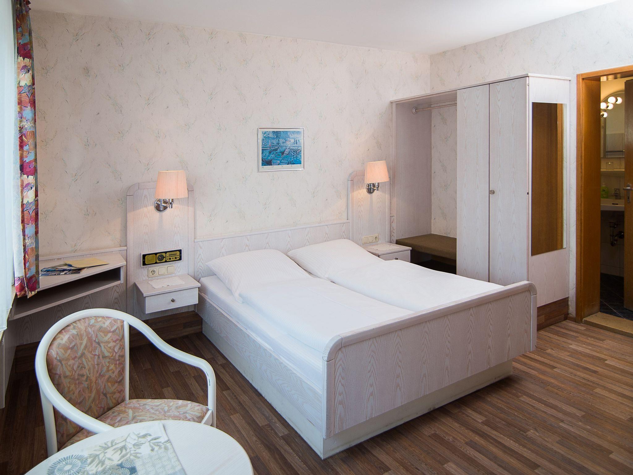 Unser familiär geführtes Haus liegt in einem ruhigen Garten, nur ein paar Gehminuten von der Altstadt entfernt. Das Hotel wurde um 1970 gebaut und verfügt über 18 Zimmer, jeweils ausgestattet mit Dusche und WC, Fernseher und kostenlosem WLAN, zudem haben fast alle Zimmer einen Balkon zur südlichen Gartenseite hin. Ein regional geprägtes Frühstück gibt es in zwei gemütliche Gasträumen.