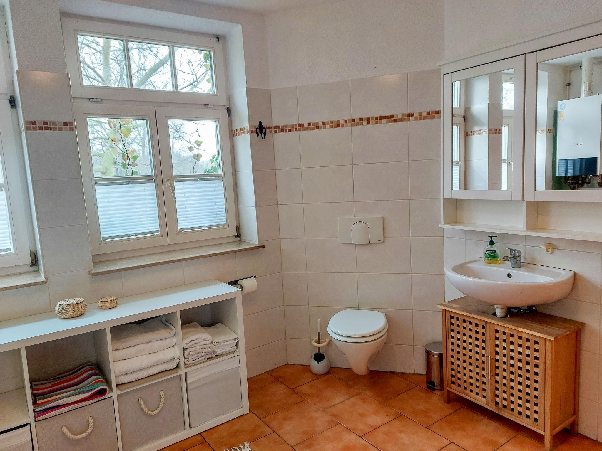 "Parkblick", 1-room house 65 m2. Object suitable for 2 adults + 1 child. Renovated in 2022, cosy furnishings: living/sleeping room with 1 sofabed and 1 double bed (180 cm, length 200 cm), dining table and satellite TV (flat screen). Exit to the terrace. Kitchen (2 ceramic glass hob hotplates, toaster, kettle, microwave, freezer, electric coffee machine). Bath/shower/WC. Gas heating, wood heating. Terrace 30 m2. Terrace furniture. Facilities: washing machine. Internet (WiFi, free). Parking at the house. Please note: non-smoking house. Private entrance, smoke alarm, fire extinguisher. The house is adjacent to another vacant building. The landlord only accepts a maximum of 2 adults + 1 child.
