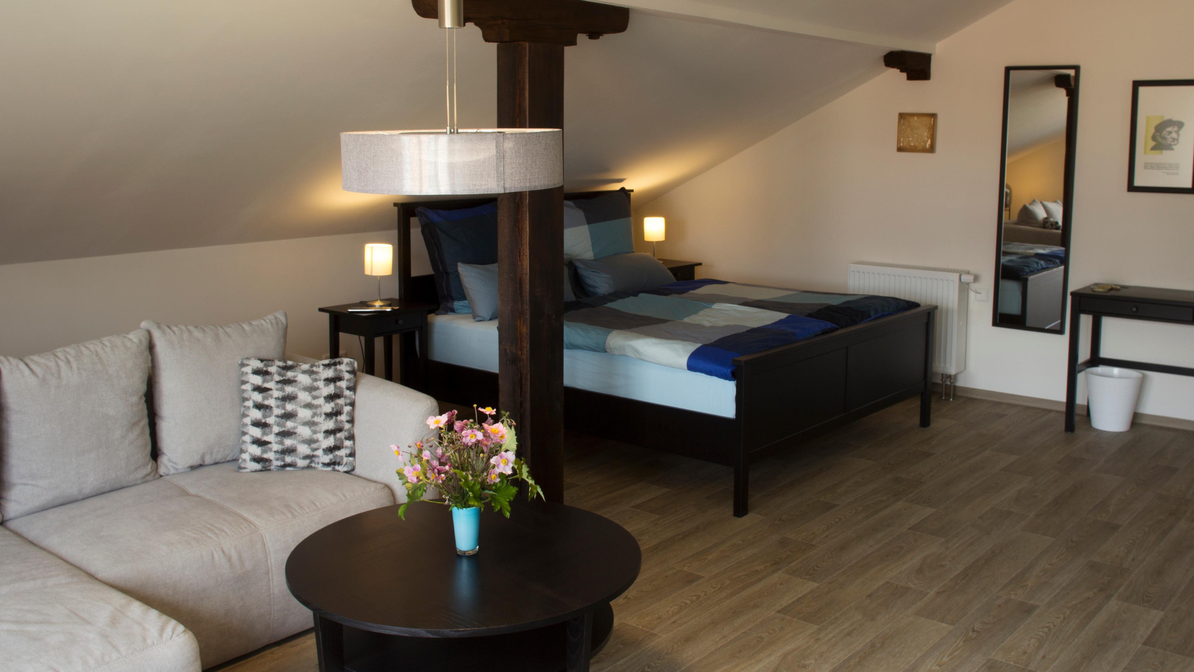 Die Ferienwohnung "Ringelnatz" garantiert erholsame Tage in gemütlichen Ambiente. Sie verfügt über ein Doppelbett, ein Schlafsofa, eine voll ausgestattete moderne Gemeinschaftsküche mit Balkon und ein modernes Gemeinschaftsbad. Für Kleinkinder bis 4 Jahre steht kostenfrei ein Babybett zur Verfügung.